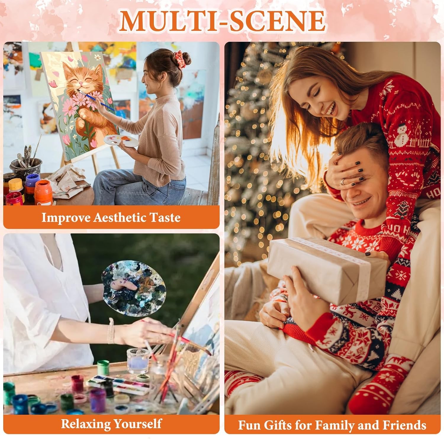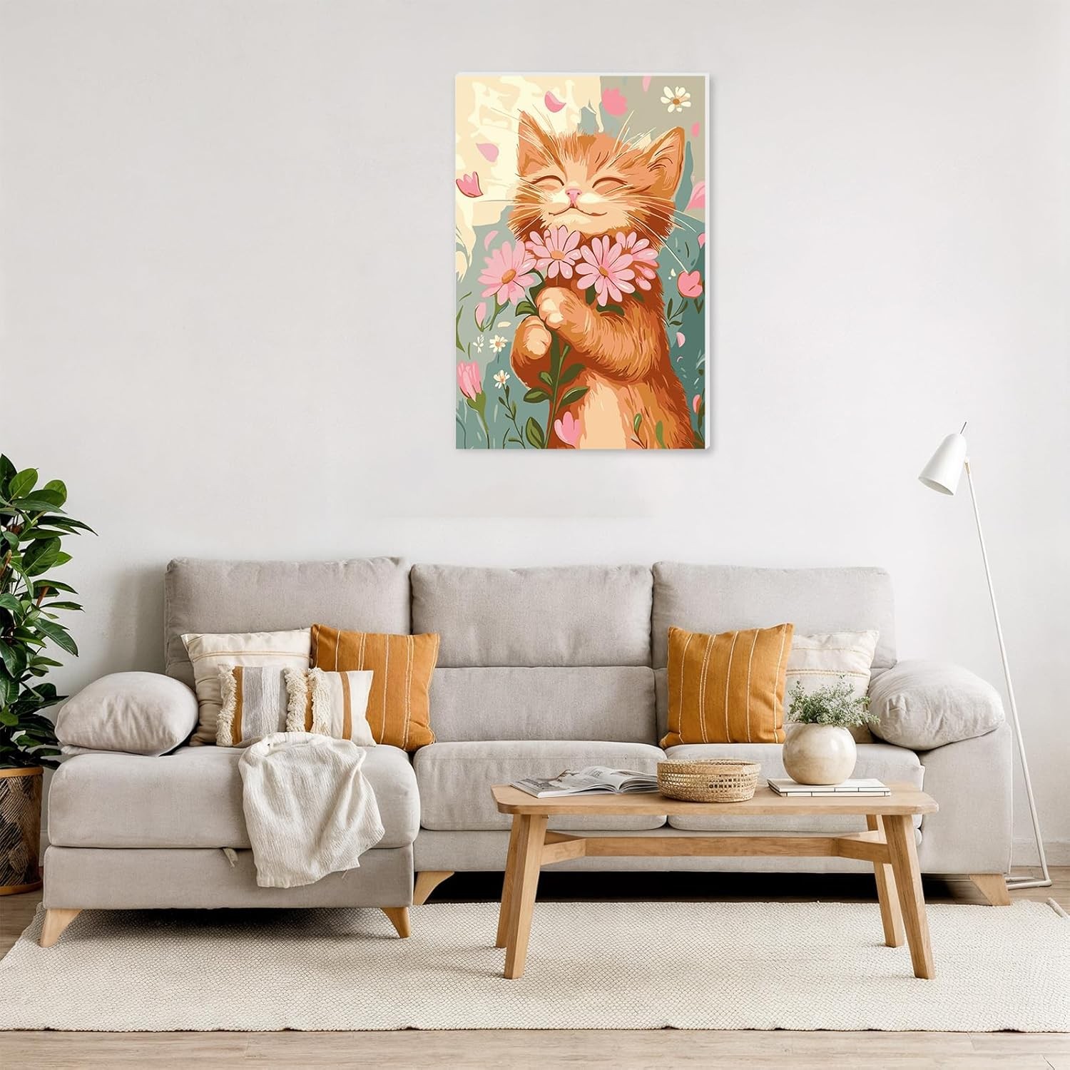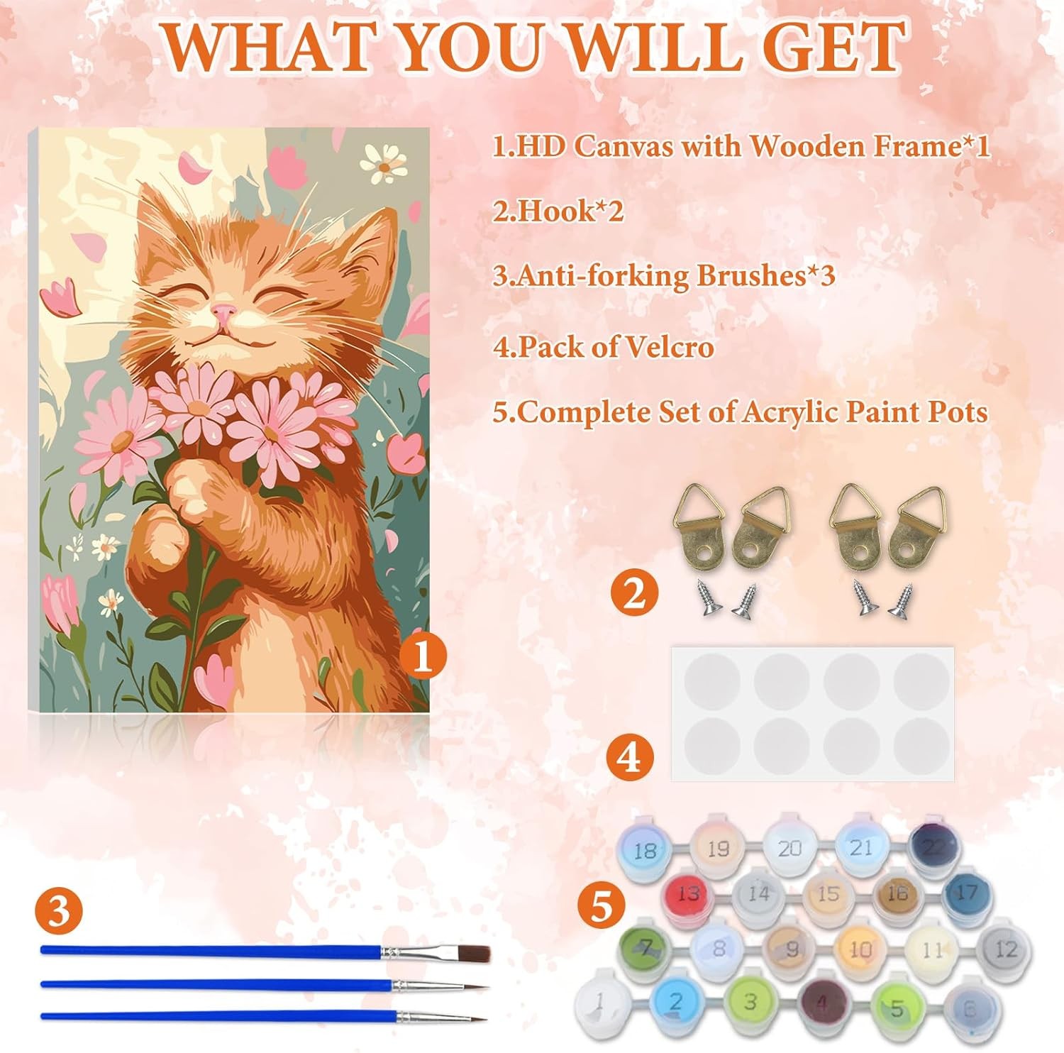 Cat Flower Paint by Numbers Kits for Adults Beginner with Wooden Framed, Color..