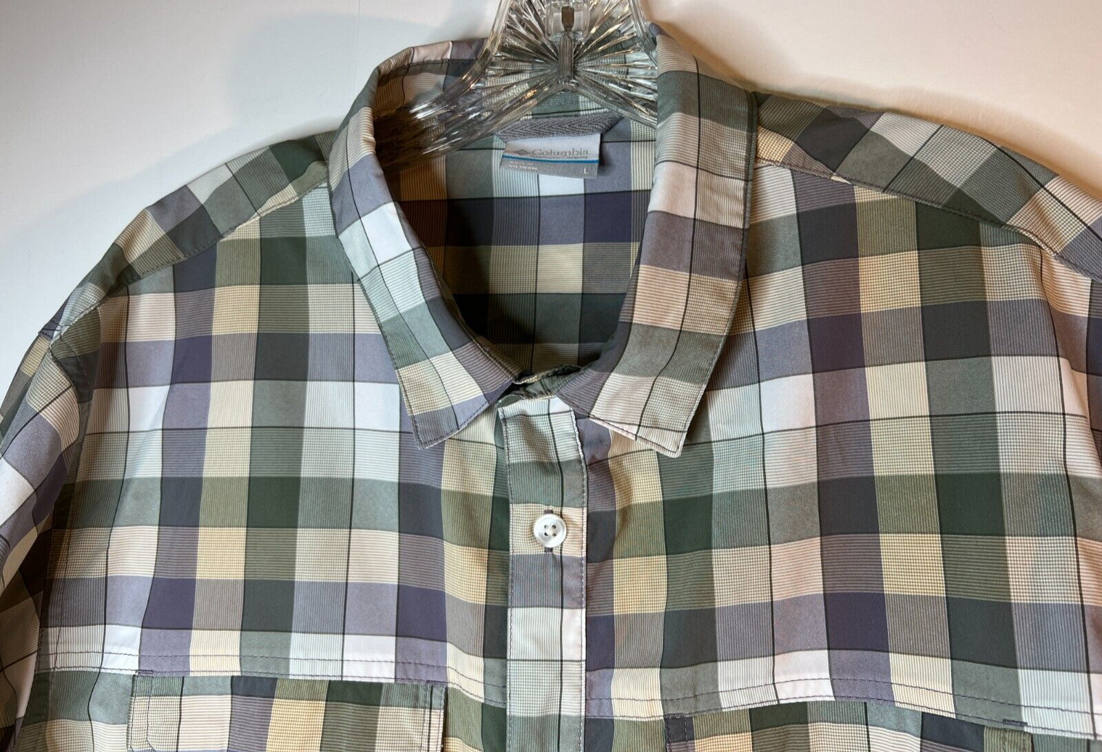 как выглядит Columbia Westerly Winds Mens Short Sleeve Button Up OmniWick Shirt Gray Check-L фото