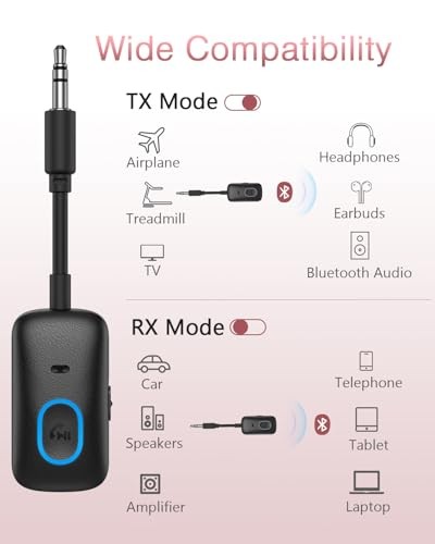 Bluetooth 5.3 Transmitter Receiver, Airplane Headphone Adapter, Aux Bluetooth