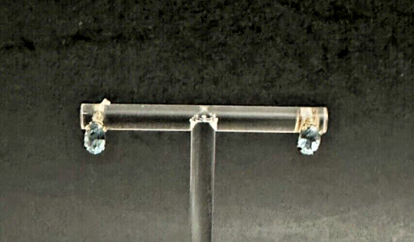 7x4mm Oval Blue Topaz Solitaire 14k Solid Yellow Gold Stud Style Earrings