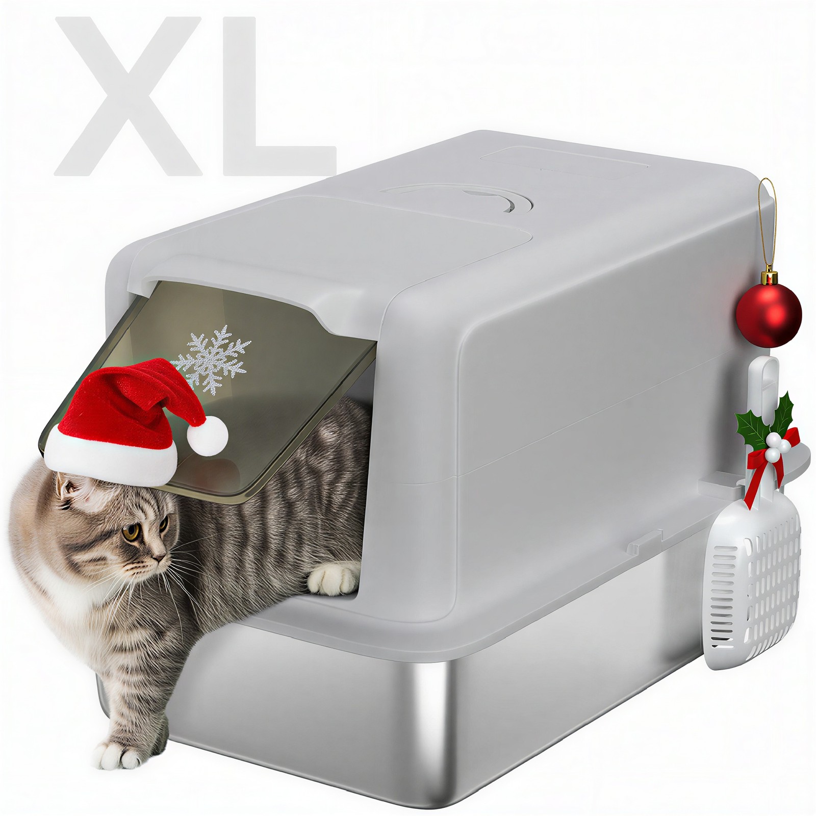 2 in 1 Stainless Steel Cat Litter Box with Removable Lid, Gray