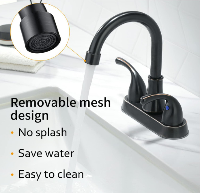 как выглядит Grifo de ba o 4" bronce aceitado, 2 manijas con desag e y mangueras. Nuevo фото