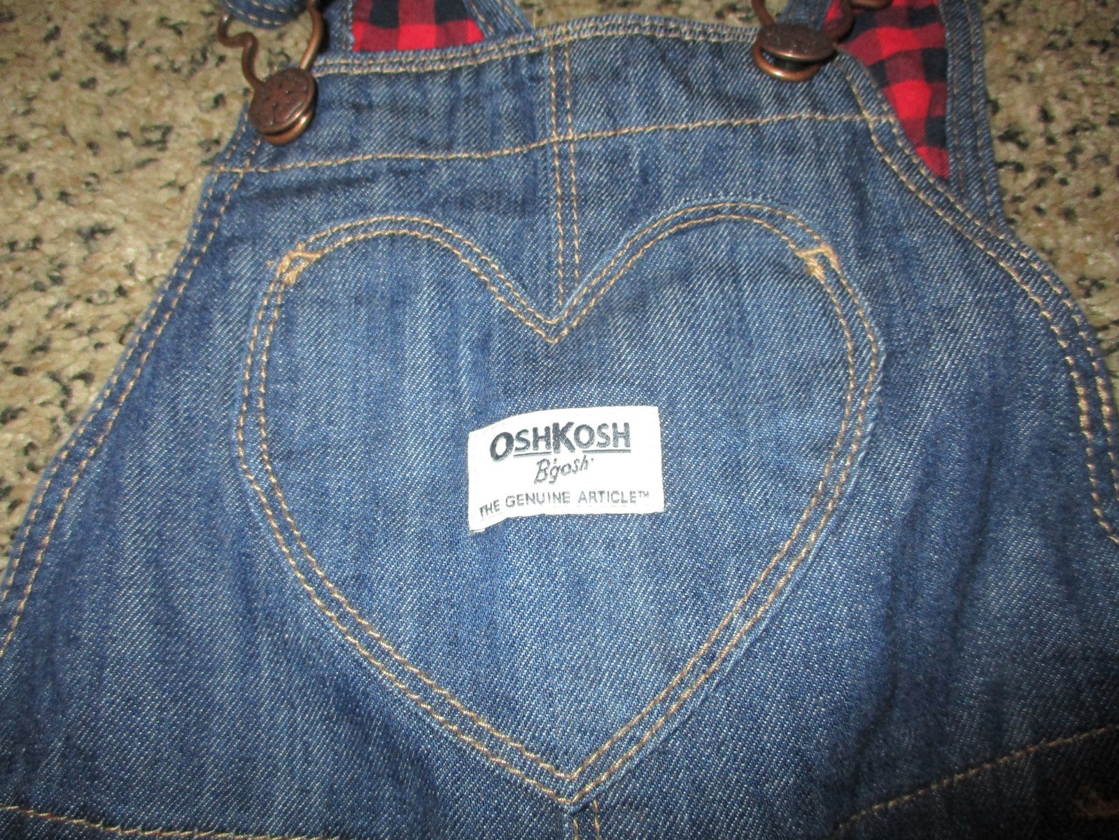 как выглядит Oshkosh B gosh Denim Overalls Buffalo Check Cuff Heart Pocket Toddler 3T фото
