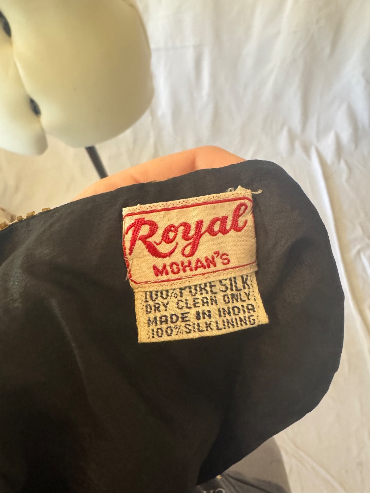 Vintage 70s 80s Imported Silk Top with Gold Sequins in Butterfly Motif