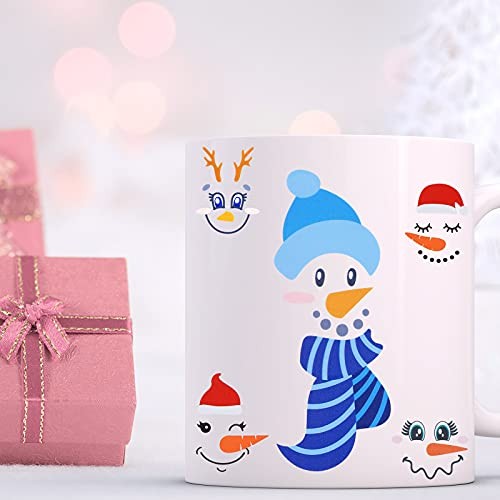 как выглядит 60 Pcs Snowman Face Stickers for Christmas Ornaments, Vinyl Decals DIY Craft фото