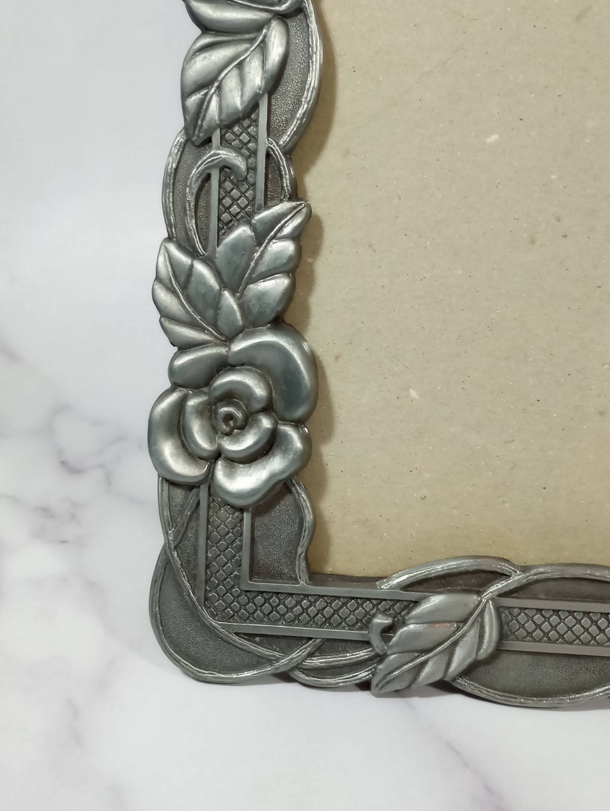 как выглядит Vintage Pewter Metal Picture Frame Ornate Floral Rose and Vine Design 8x10 Photo фото