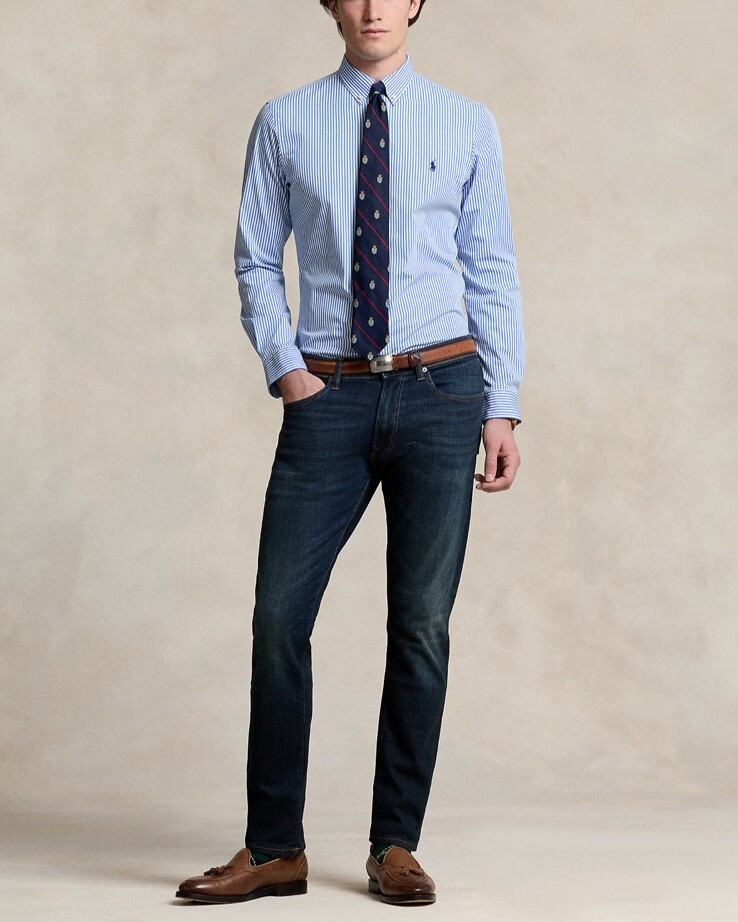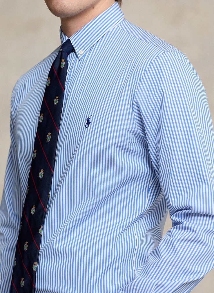 как выглядит 130 Polo Ralph Lauren Men s Slim Fit Striped Poplin Shirt Blue/White Size M фото