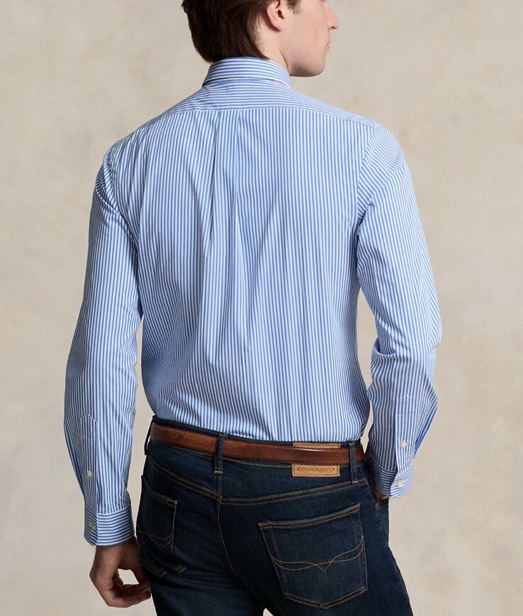 130 Polo Ralph Lauren Men s Slim Fit Striped Poplin Shirt Blue/White Size M