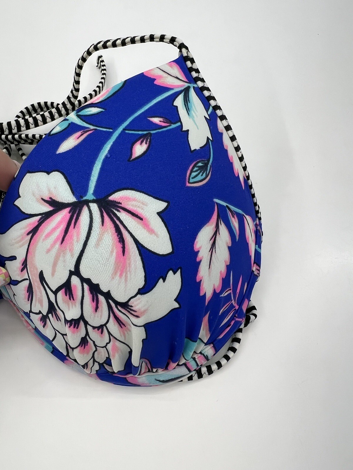 Womens Shade and Shore Padded Push Up Blue Floral Swim Bikini Top