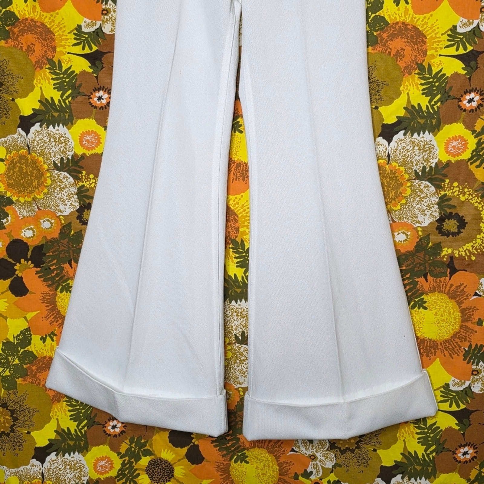 VTG 70s Levi s White Bell Bottom Pants Big Flare Cuffed Disco USA, sz 24x28.5