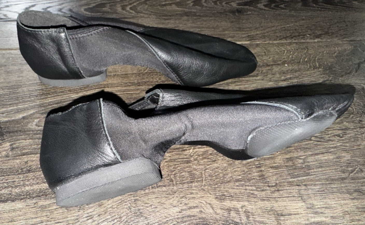 как выглядит SO DANCA Jazz Shoes Black Leather Split Sole Slip-On Dance Shoes Size 9M USA фото