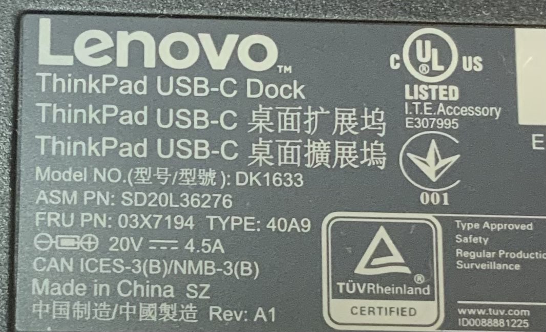 Lenovo DK1633 ThinkPad USB-C Docking Station with USB/DP/HDMI/RJ-45 Ports V2B