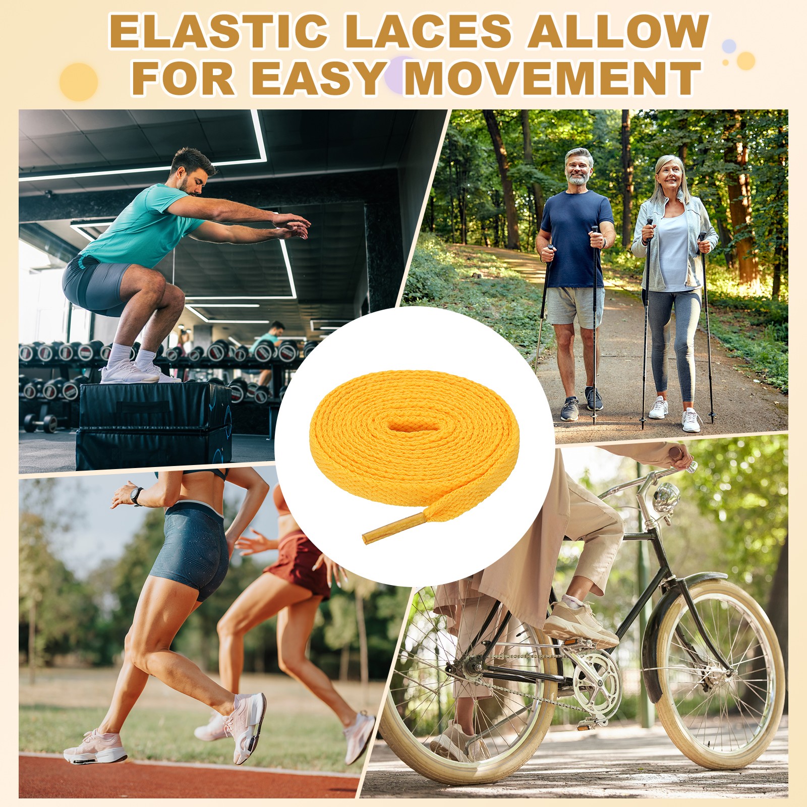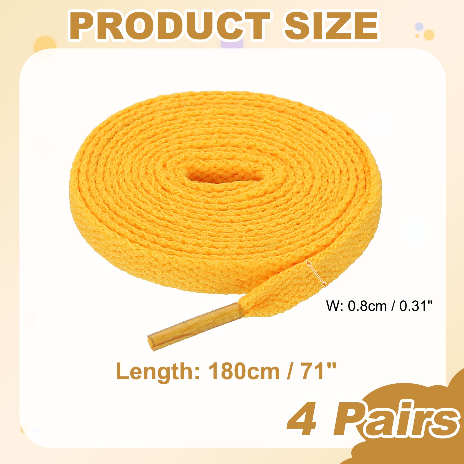 как выглядит 4 Pairs Flat Shoe Laces 5/16" x 180" Polyester Sneaker Shoestring, Gold фото