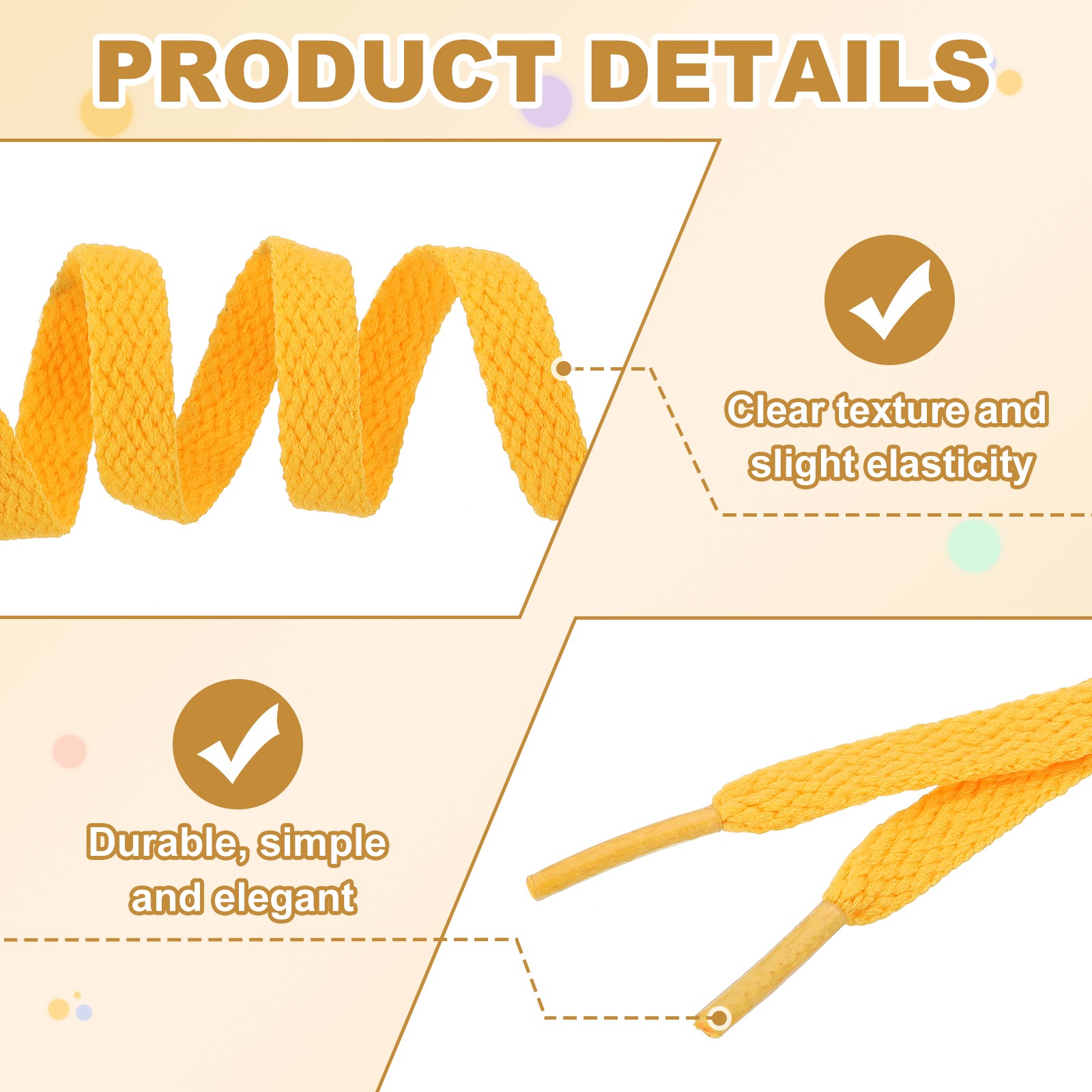 как выглядит 4 Pairs Flat Shoe Laces 5/16" x 140" Polyester Sneaker Shoestring, Gold фото