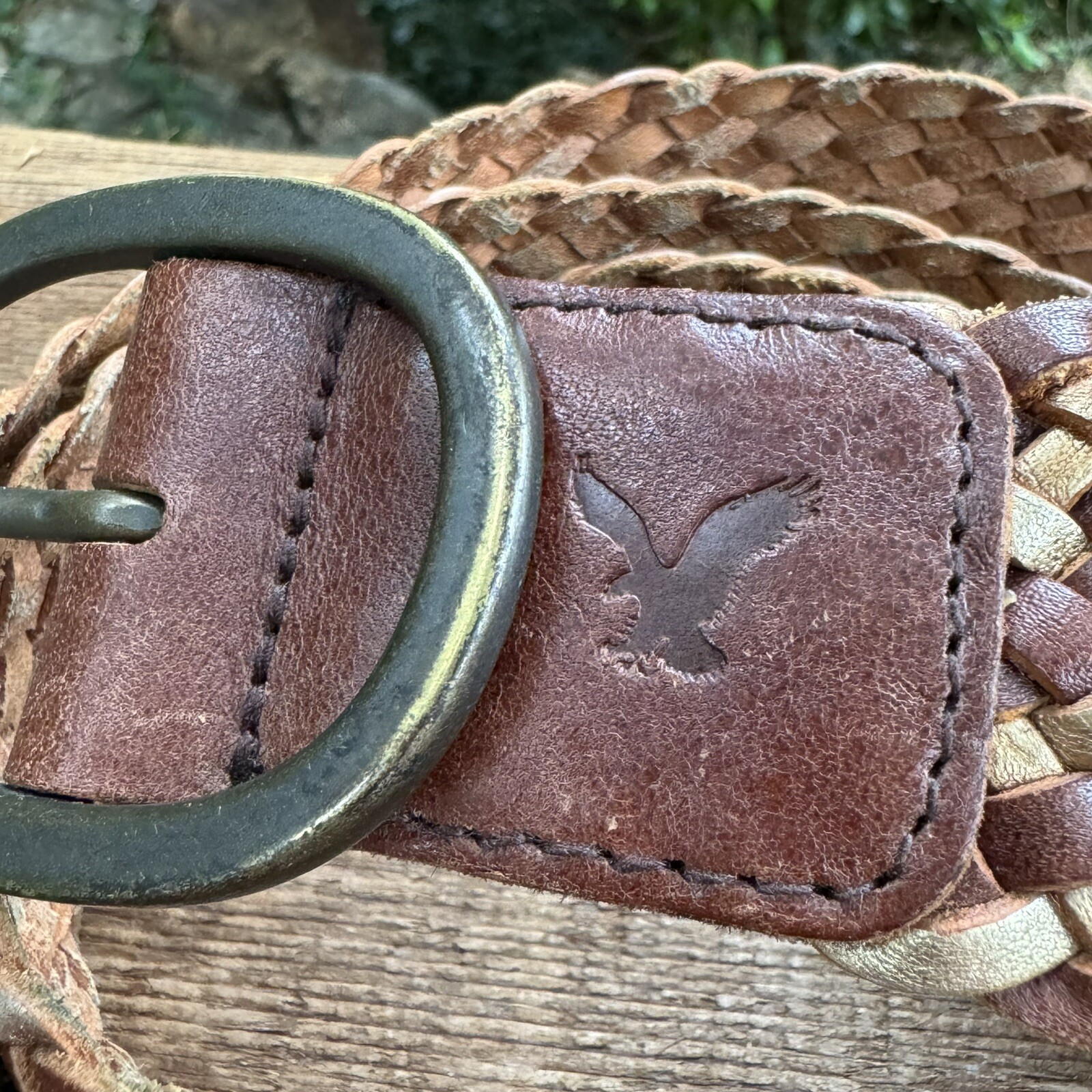 American Eagle Outfitters Braided Leather Belt Woven Brown/Copper/Gold Size-S/M