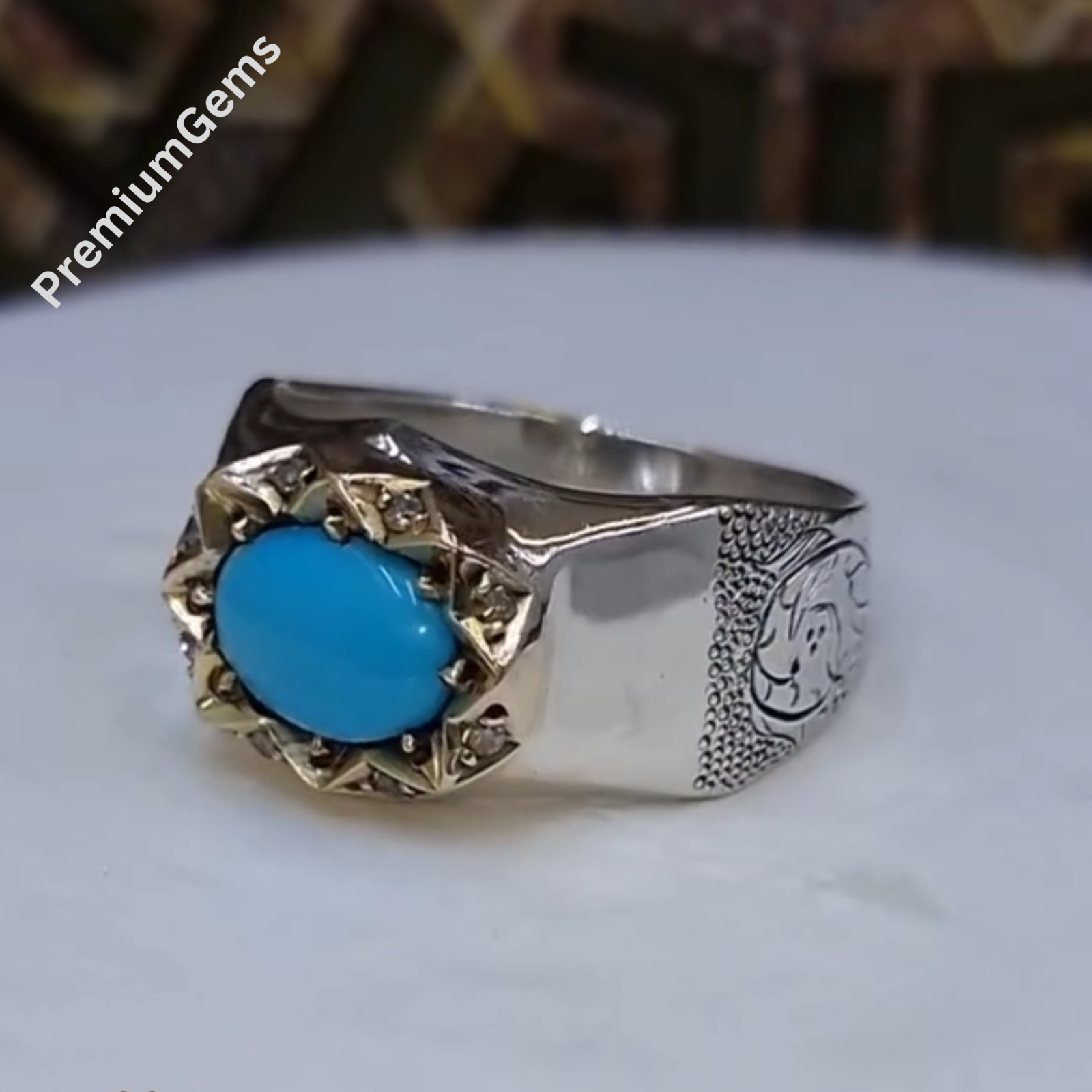 как выглядит Rare Turquoise Ring Nishapuri Feroza Natural Feroza Ring Shia Rings, Handmade фото