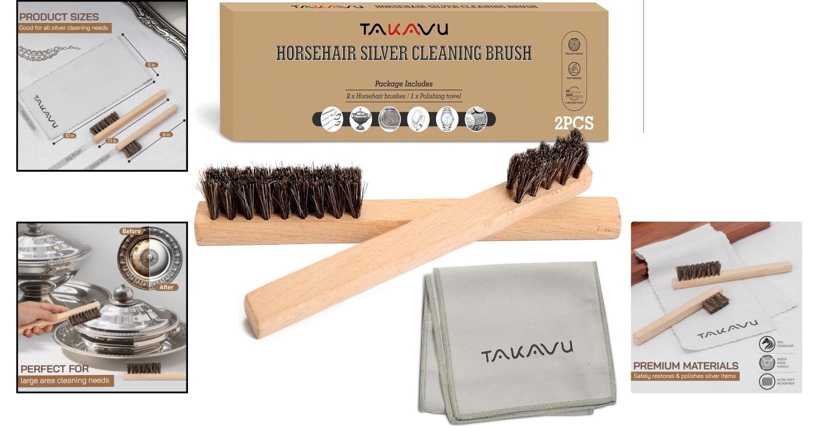 Horsehair Detail Brush Set: Scratch-Free Silver Cleaning Brushes for Jewelry