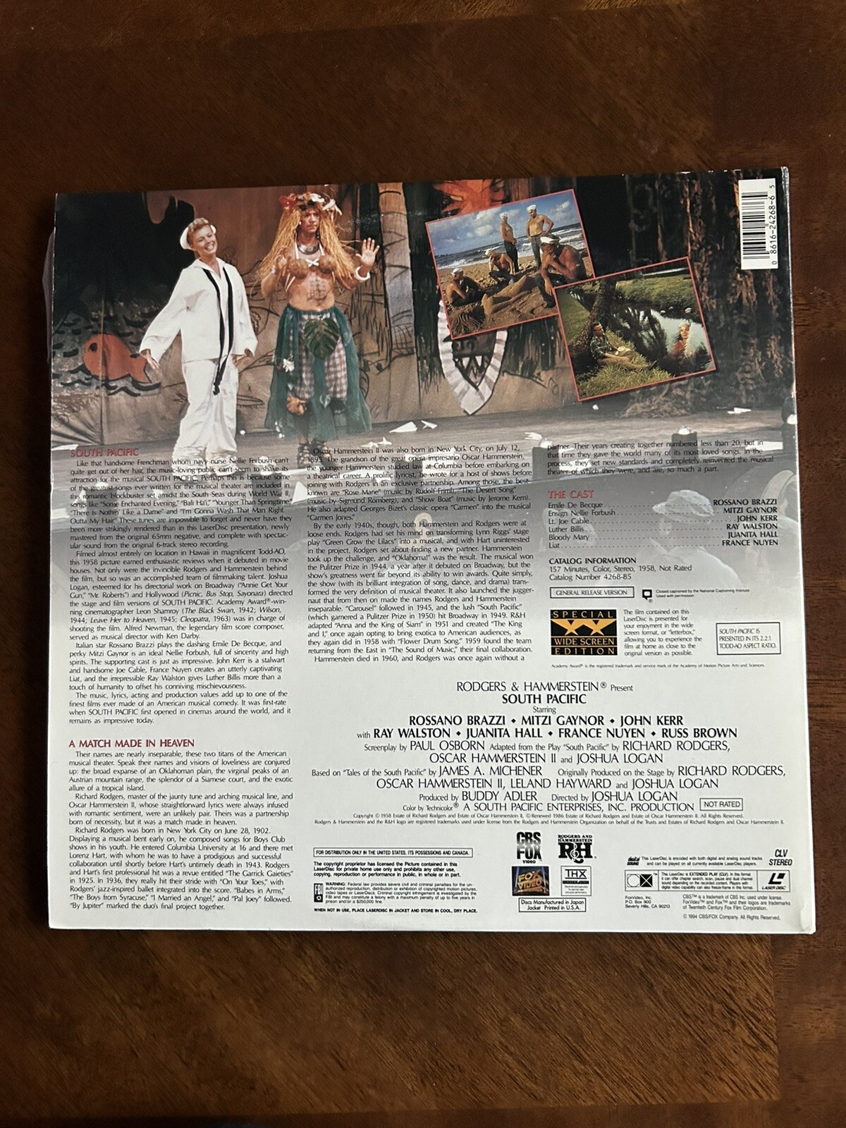 SOUTH PACIFIC 1958 LASERDISC CBS FOX HOME VIDEO 2 LASER DISCS