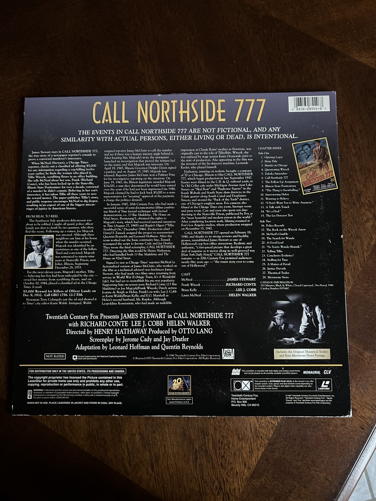 CALL NORTHSIDE 777 Laserdisc Jimmy Stewart