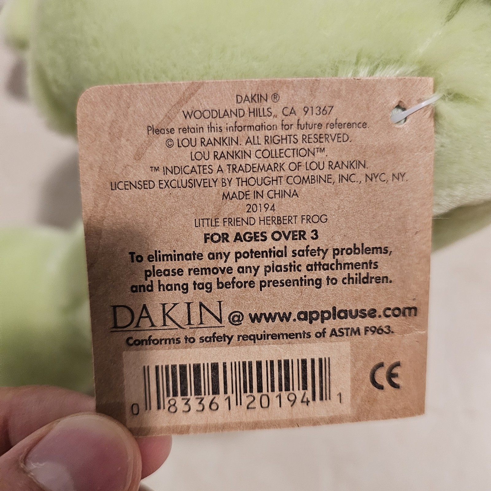 как выглядит Dakin Lou Rankin Friends Little Herbert Frog Green Plush Stuffed Applause NWT фото
