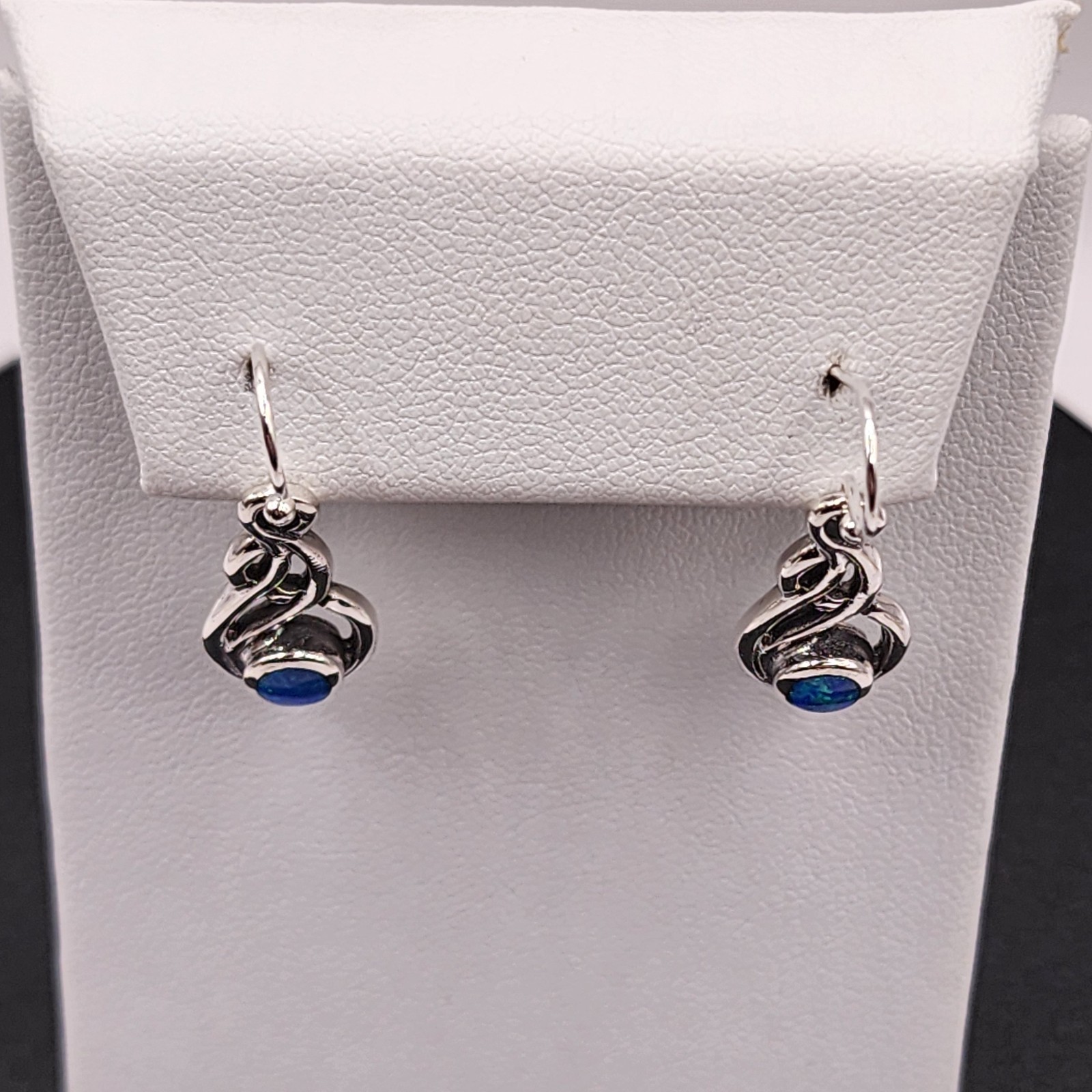 925 NEW Sterling Silver Drop Dangle Earrings Blue Lab Created Opal 21mm