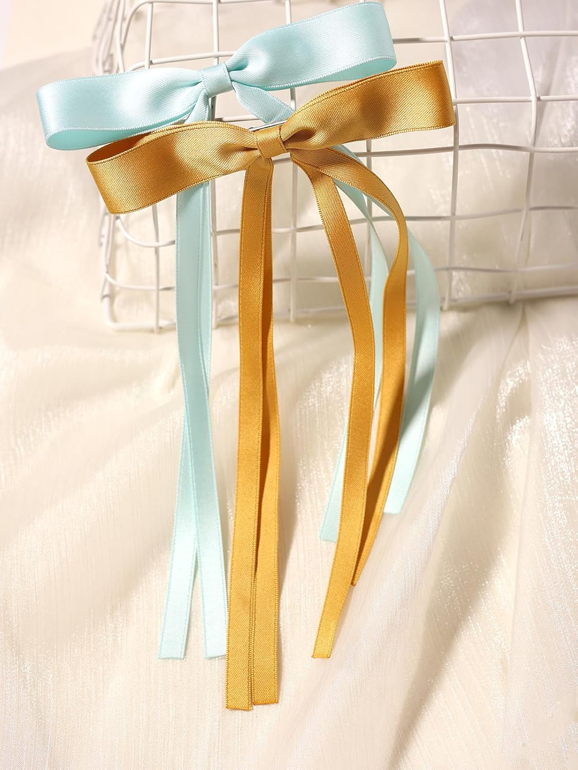 как выглядит Hair Accessories - 4pcs Bow Clips with Long Tails, Solid Tassel Bowknot Barrette фото