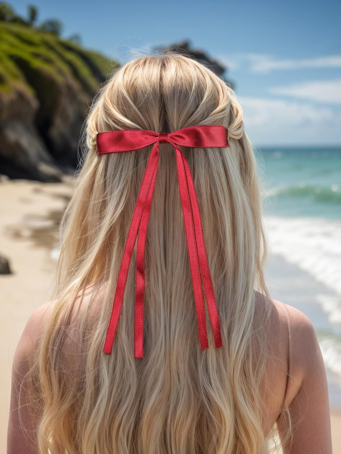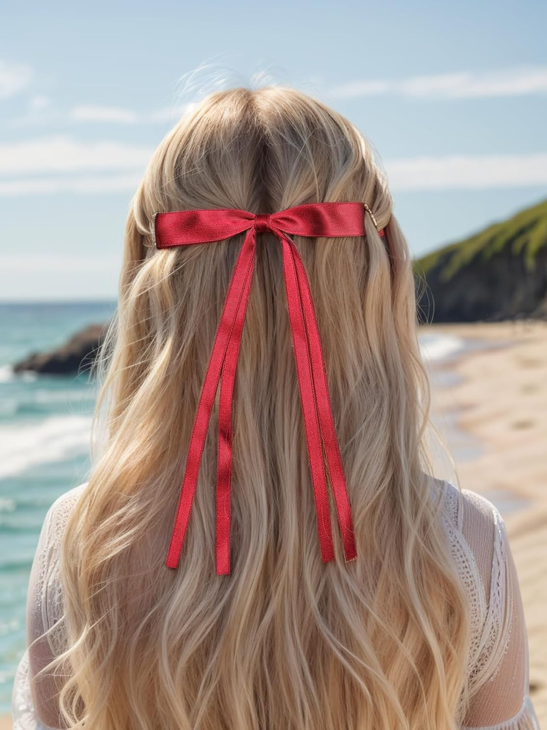 Hair Accessories - 4pcs Bow Clips with Long Tails, Solid Tassel Bowknot Barrette