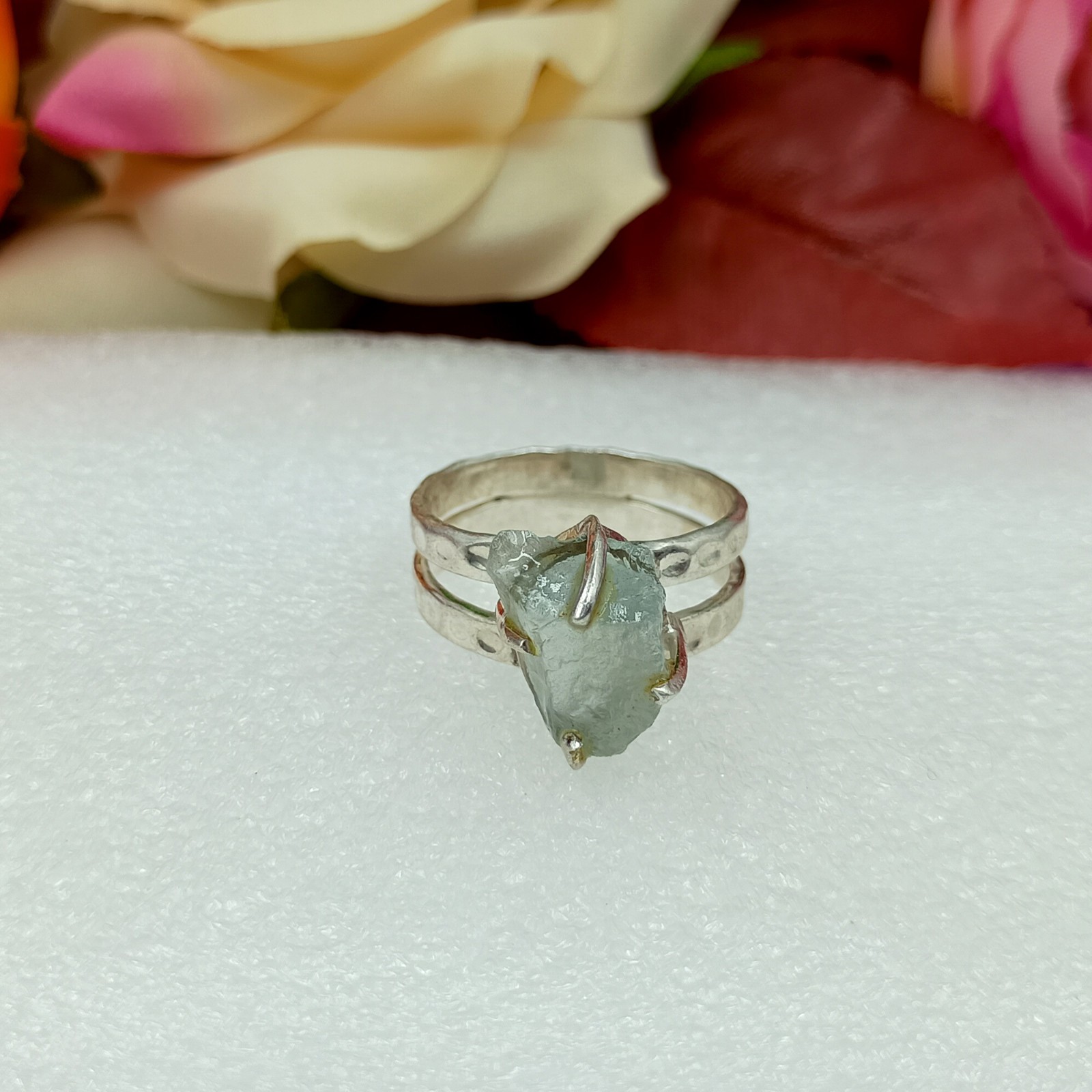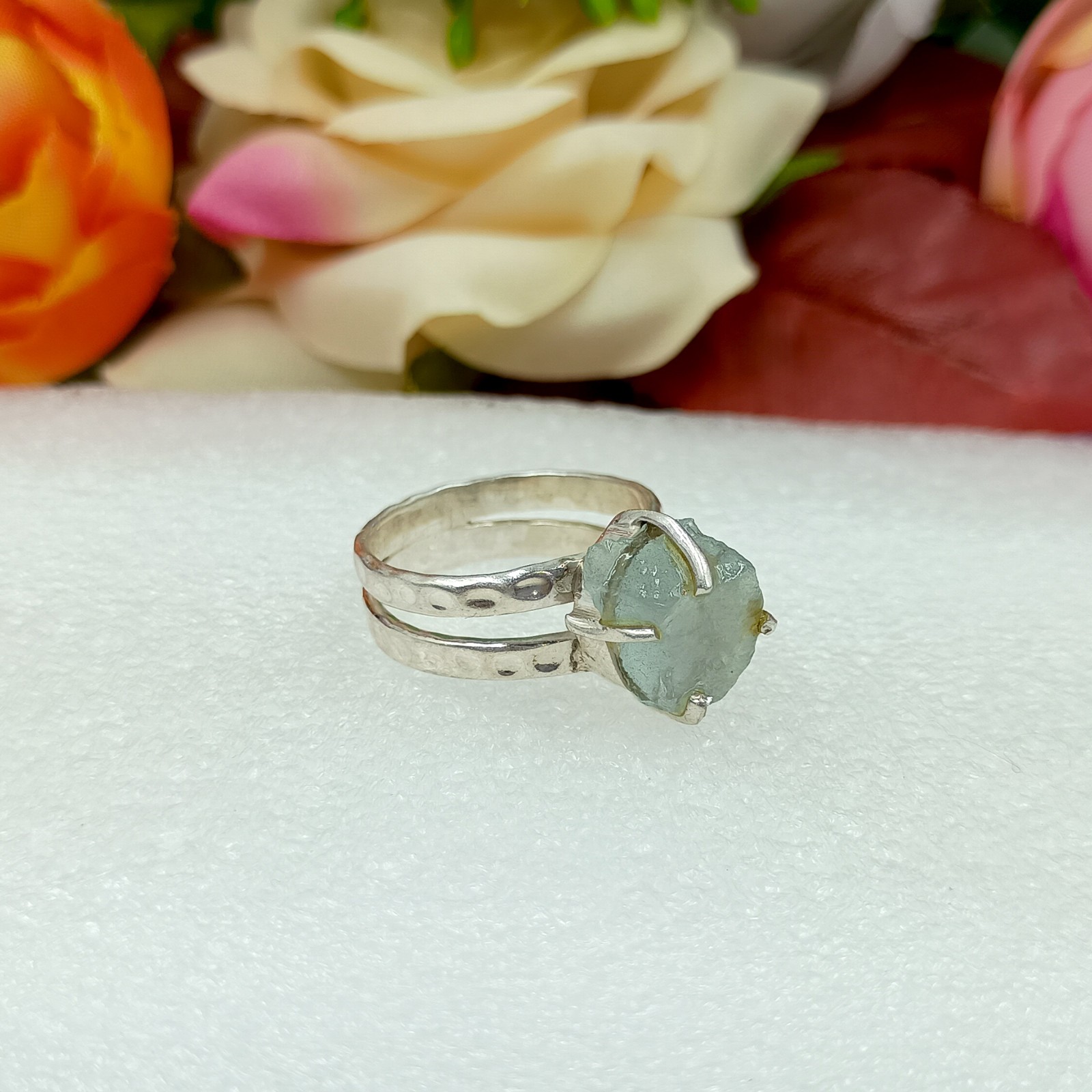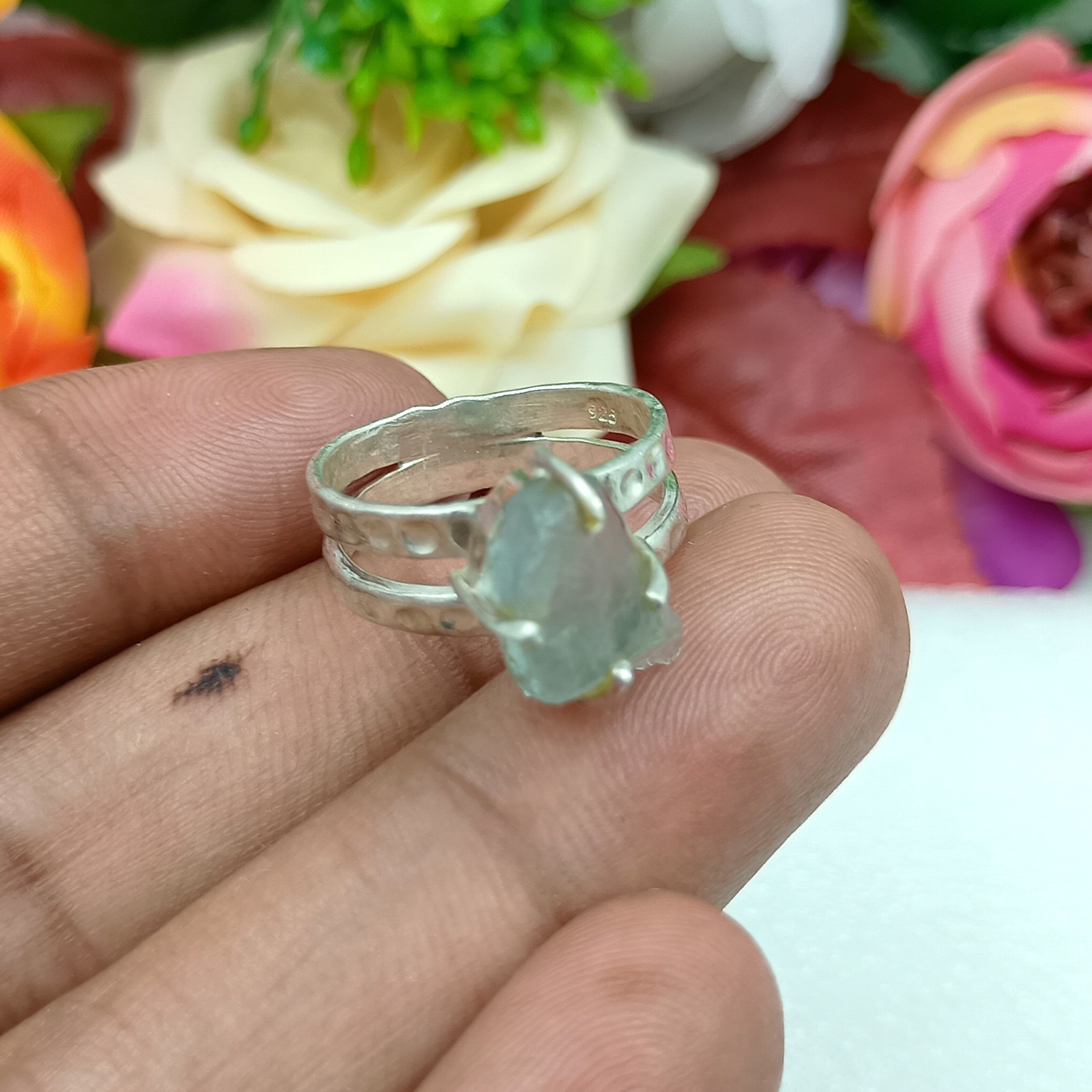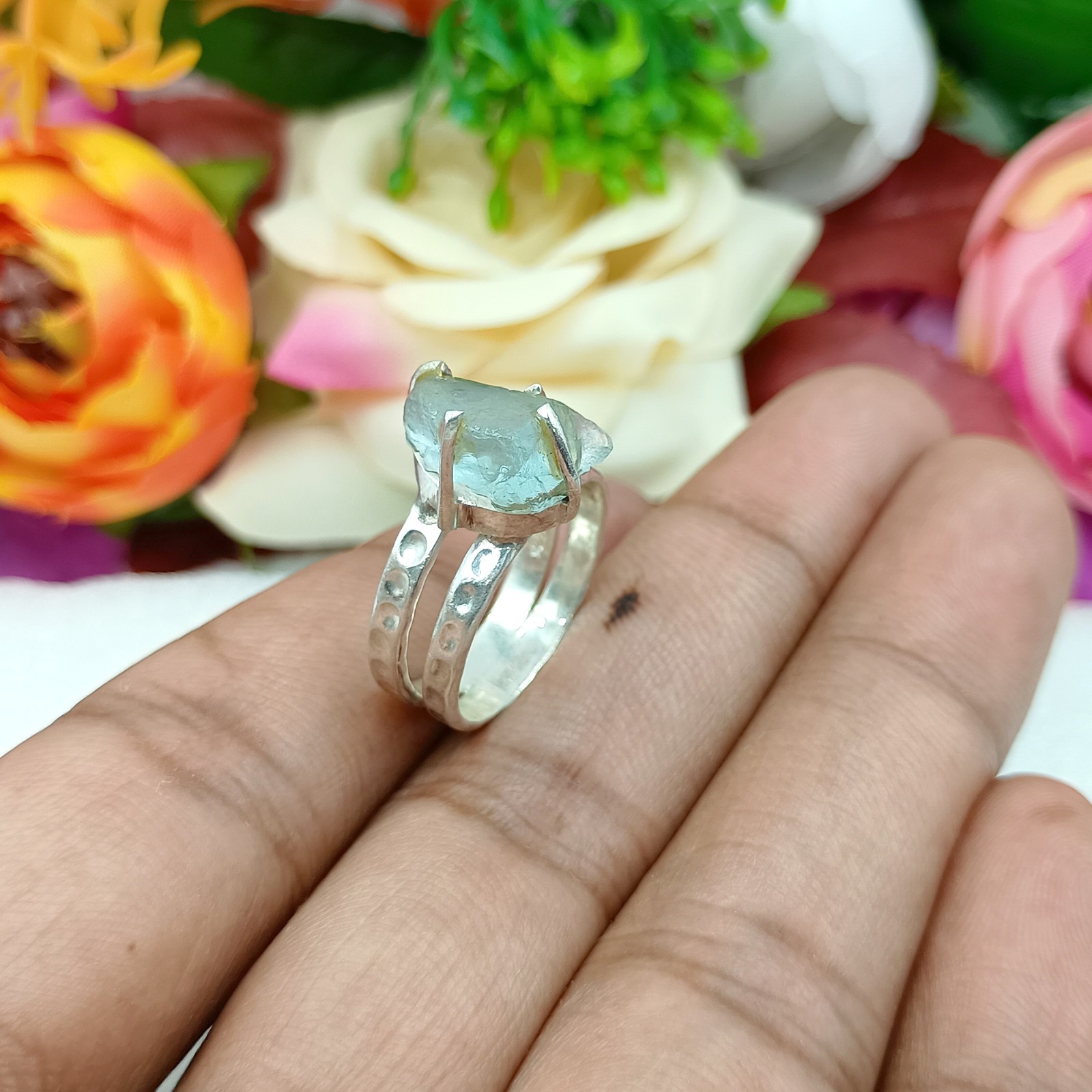 natural Raw Aquamarine Gemstone ring 925 Silver Rough Handmade jewelry Gift