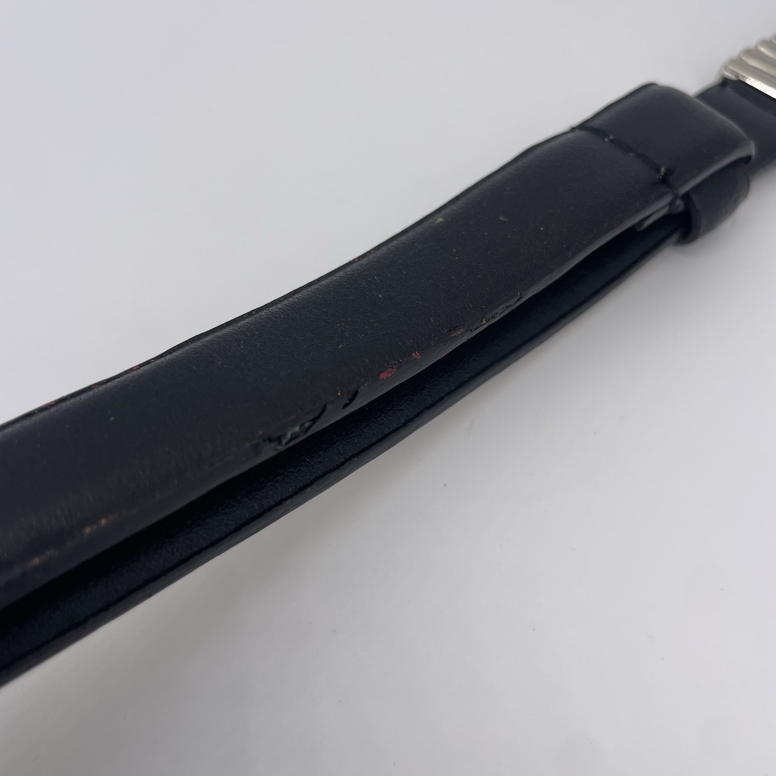 Chico s Black Leather Belt Large Silver Tone Loop Buckle Size S/M Adjustable VTG