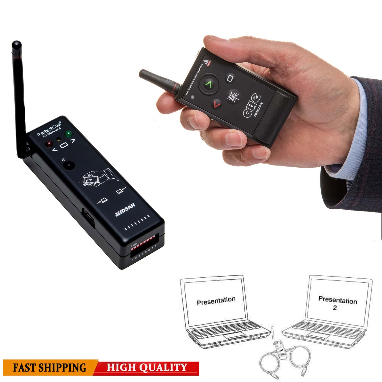 PC Micro Wireless Presenter 100M Remote for PowerPoint with Cue Light