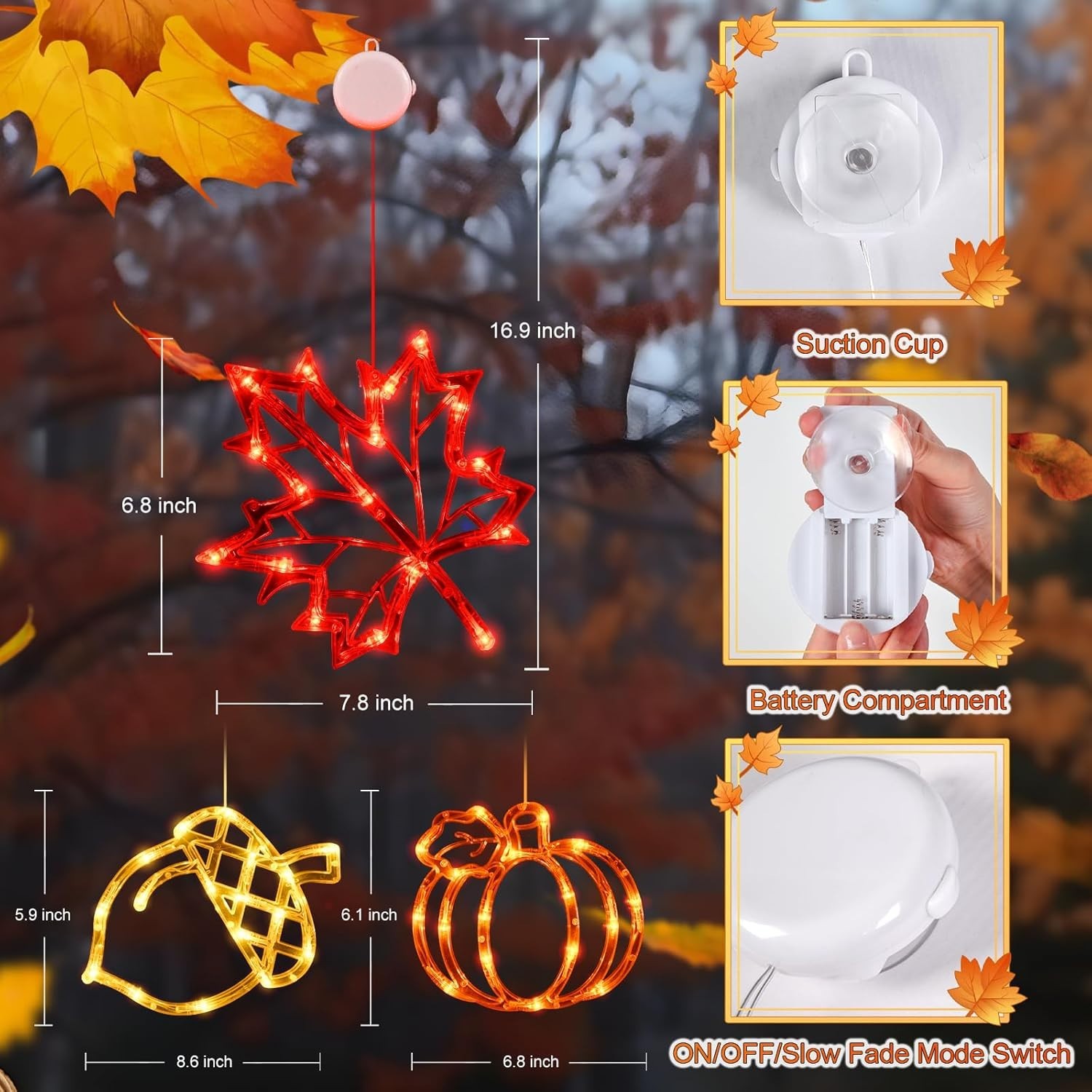 Versatile Thanksgiving LED Decorations - Acorn Maple Leaves with Suction Cups