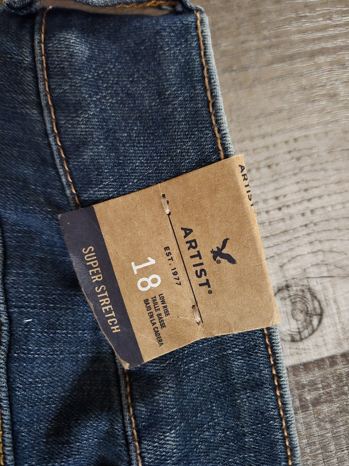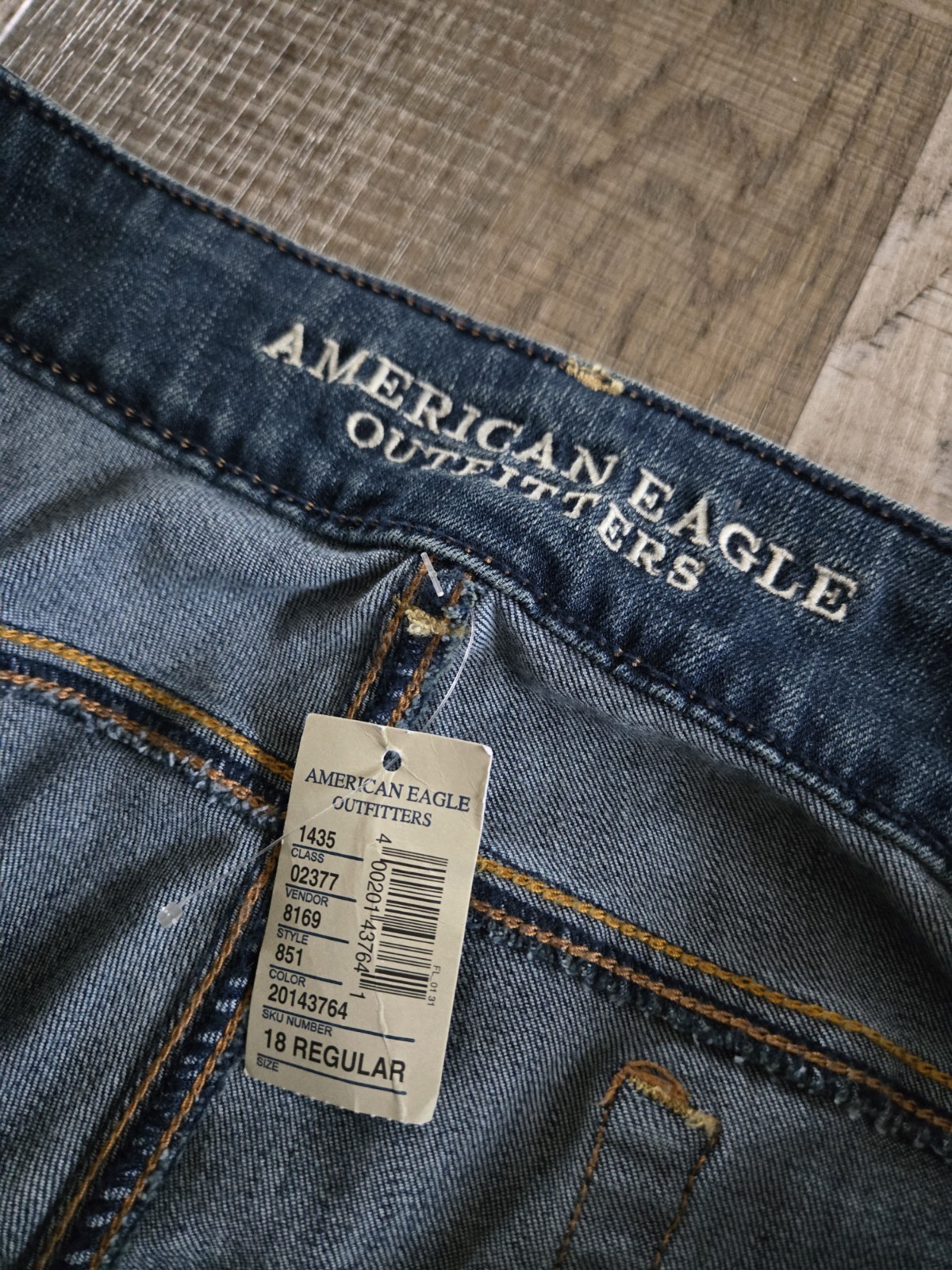 как выглядит American Eagle Womens Artist Low Rise Stretch Boot Flare Denim Jeans Sz 18 NEW фото