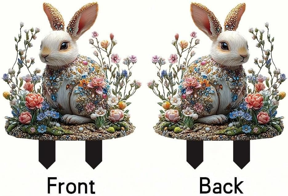 2PCS Easter Yard Outdoor Decorations, Easter Bunny Eggs Yard Signs Decoration wi