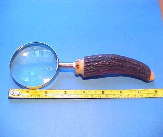 • CUSTOM MAGNIFYING GLASS LOUPE 2-1/2" 2.5" LENS BEAUTIFUL DEER STAG HANDLE NEW