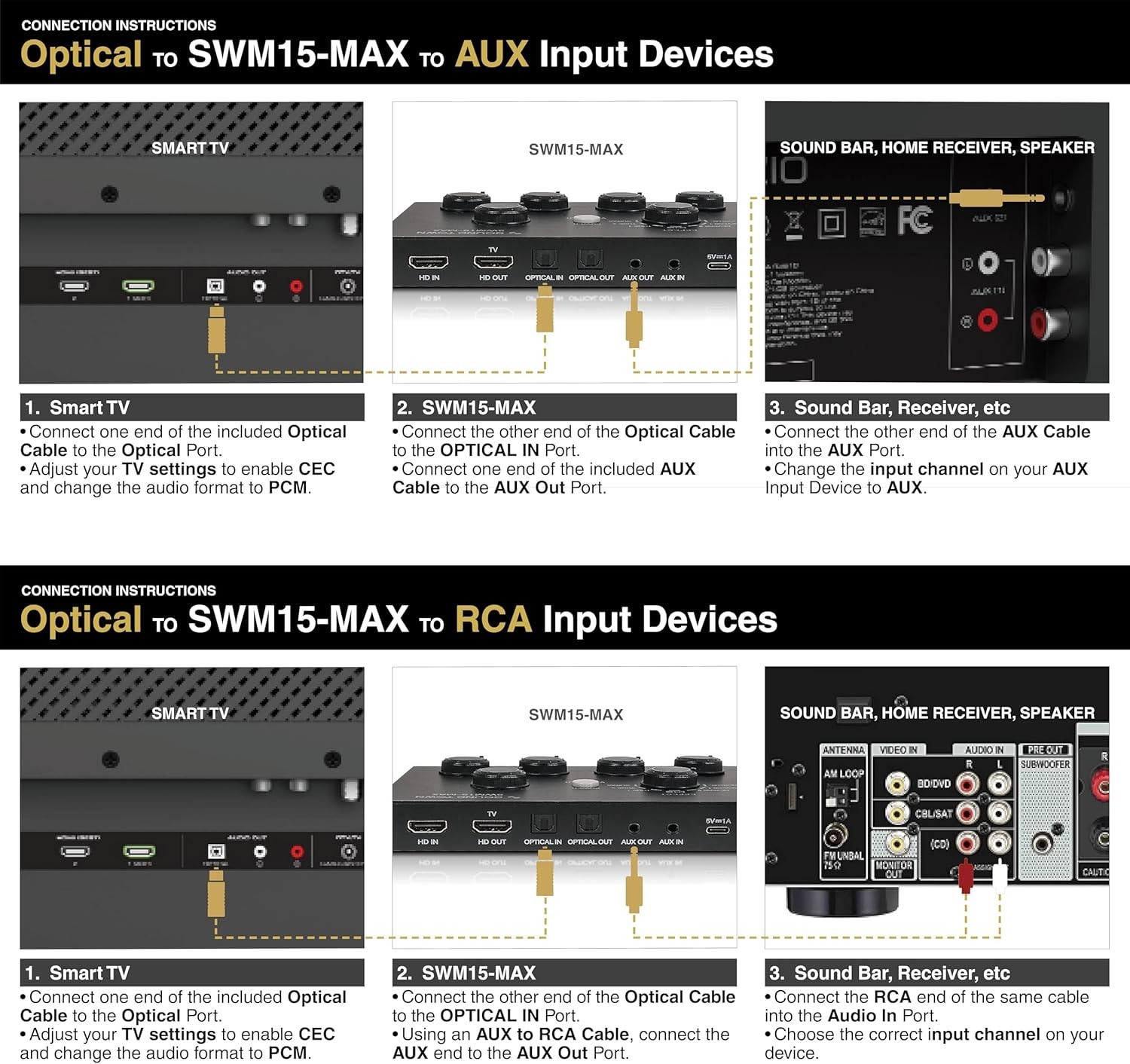 Connectivity: Bluetooth, HD ARC, Optical (Toslink), 3.5mm AUX, 6.35 mm jack