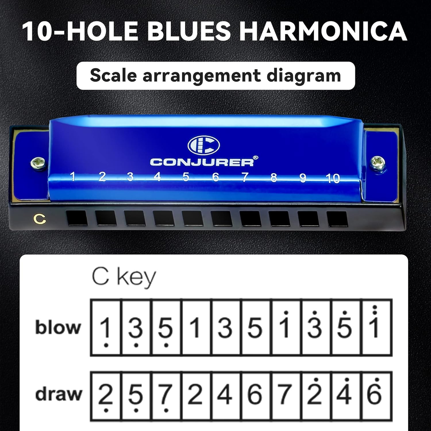 Blues Harmonica for Adult Beginners 10 Hole Diatonic Harmonica Key of C, Brass R