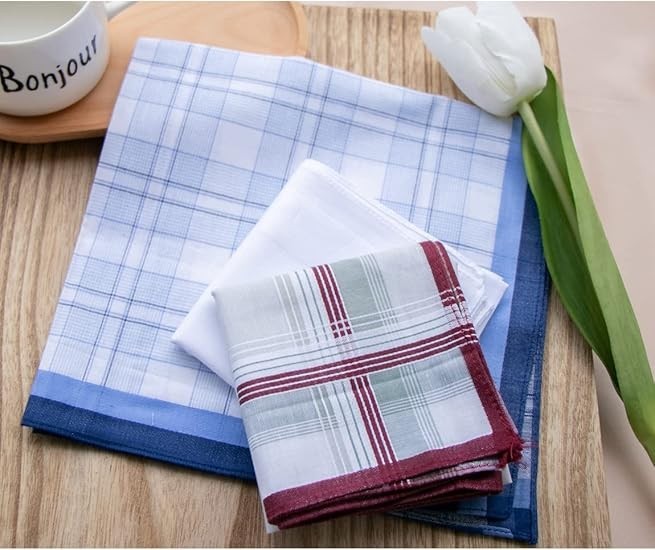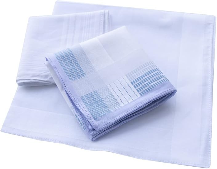 6 PCS Assorted Pack of Mens White Color Border Cotton Handkerchiefs