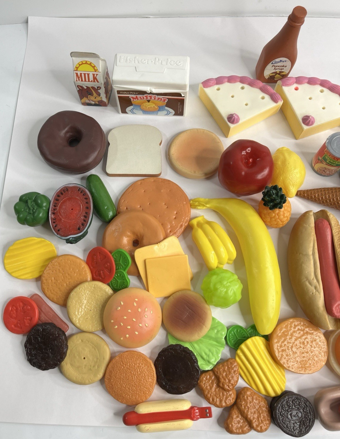 Pretend Play Food Fruits Veggies Meats Sweets Lot 74 Pieces Plastic Fast Food
