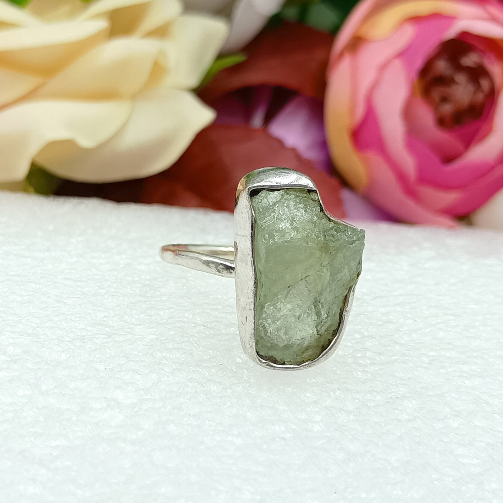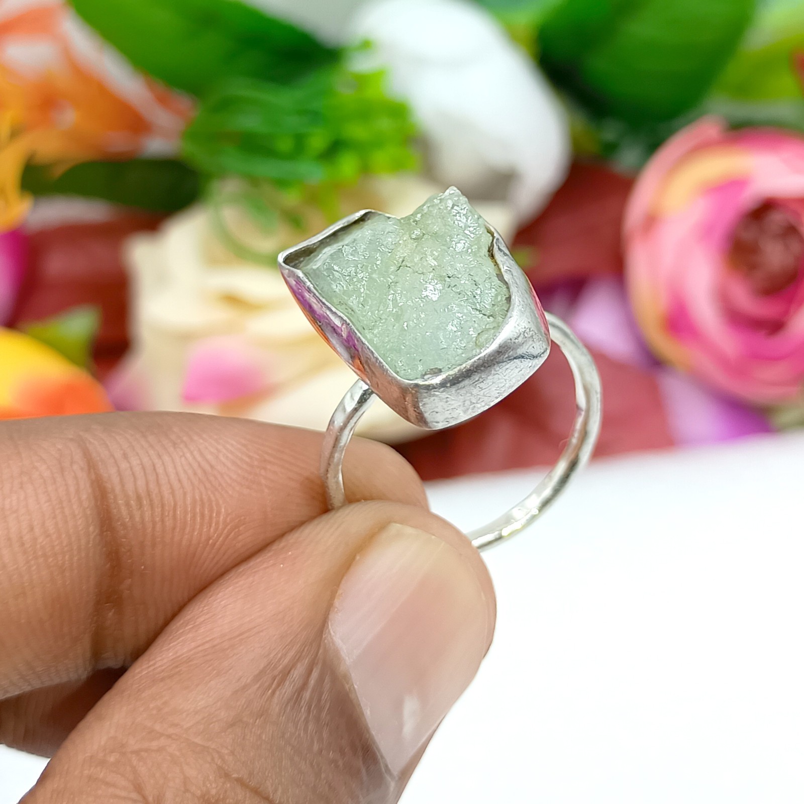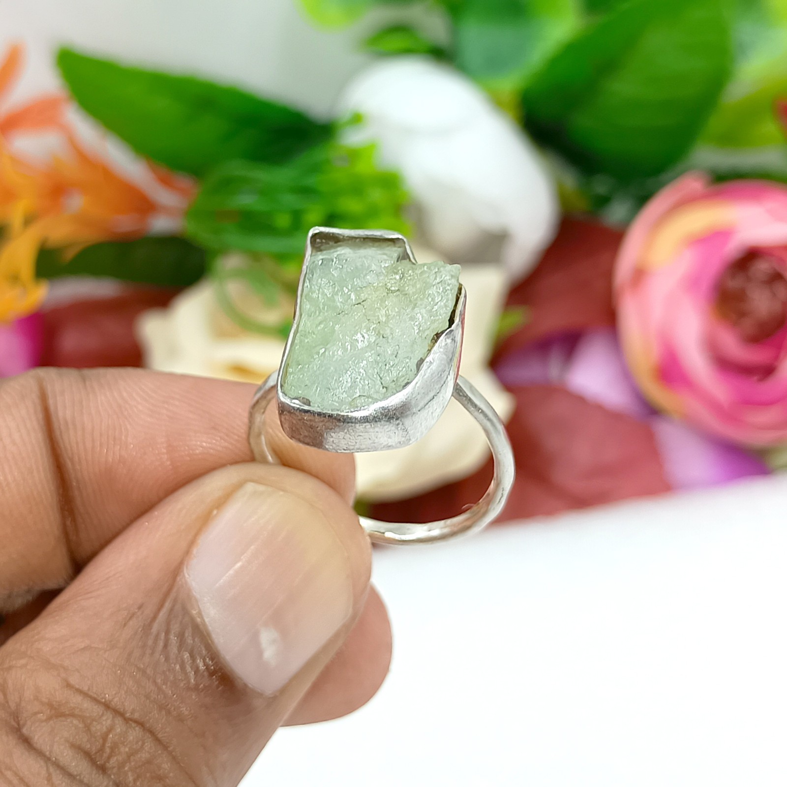 Natural Rough Aquamarine Gemstone 925 Silver ring Handmade Crystal Raw jewelry