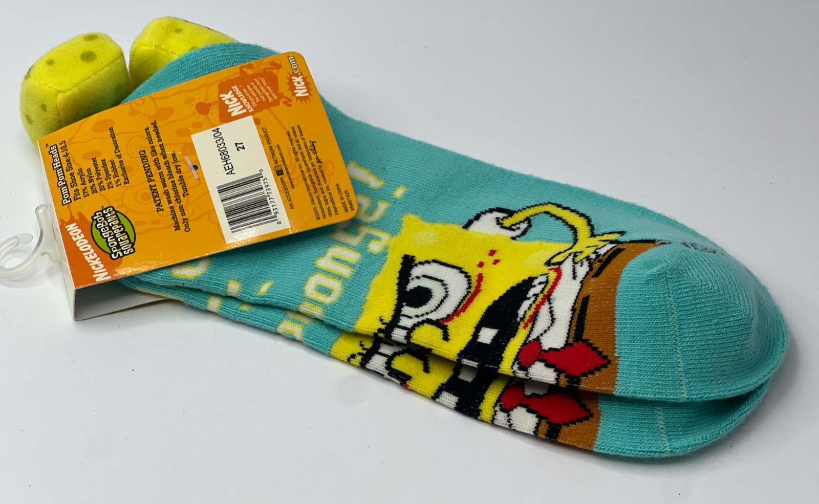 2005 Viacom Nickelodeon Spongebob Squarepants Ankle Socks Pom Pom Heads 4-10.5