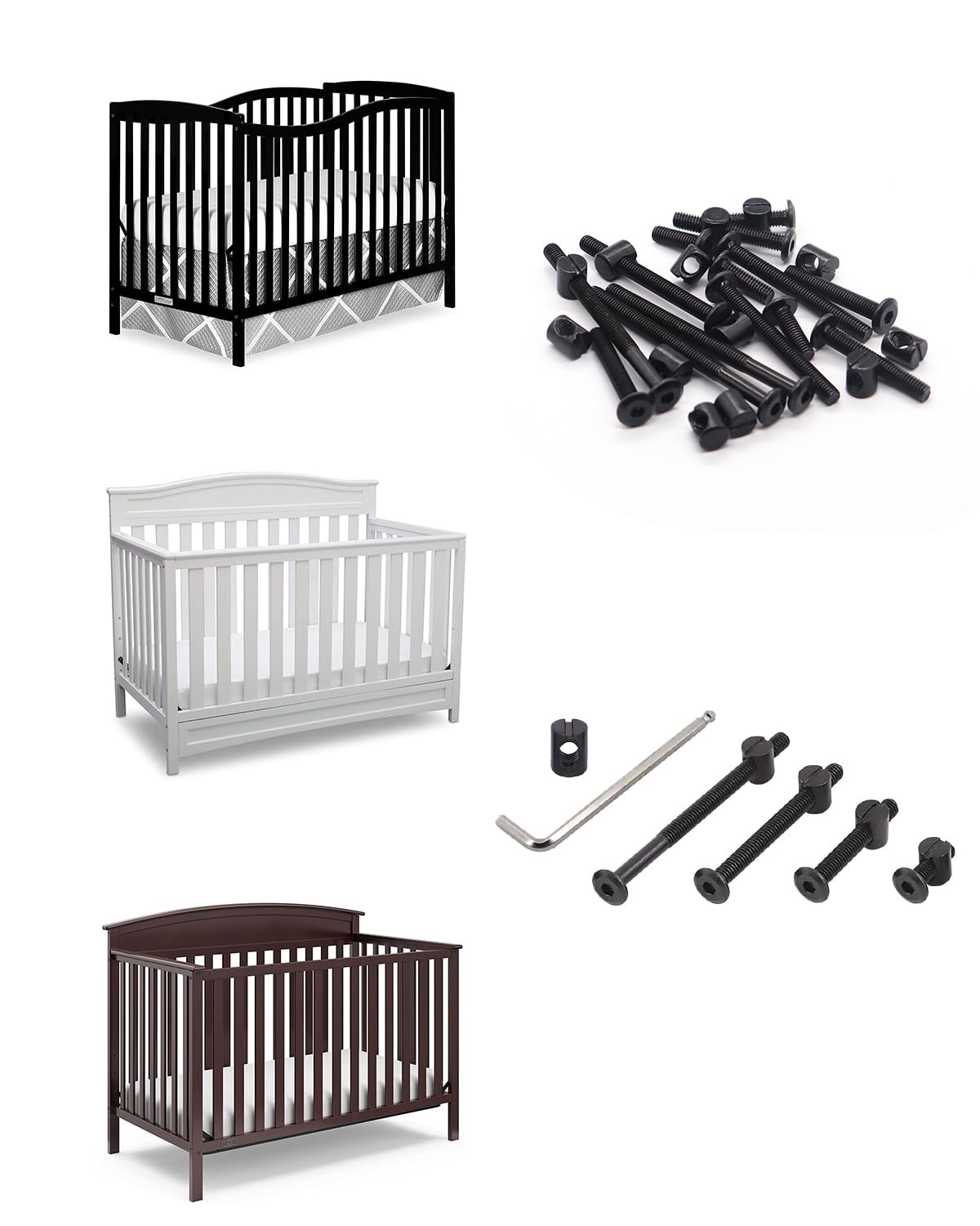 Crib Screws Hardware Replacement Kit - 16 Set Baby Bed Frame One Size, Black