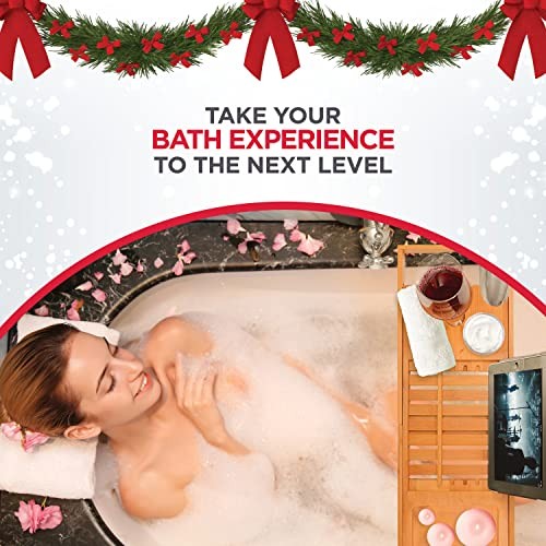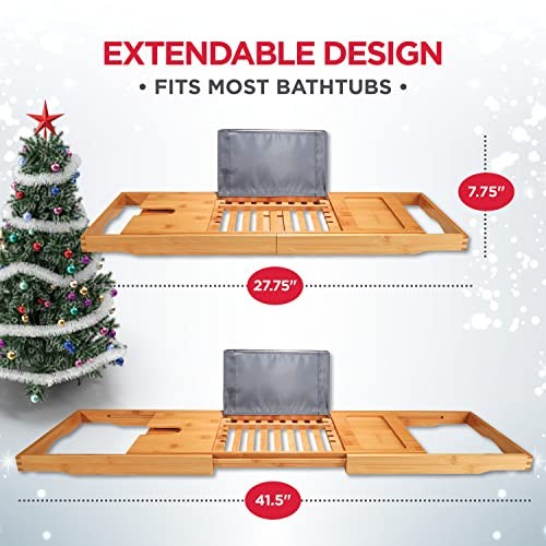 Bamboo Bathtub Tray - Expandable Bath Tub Tray Bathtub Caddy Tray- Adjustable