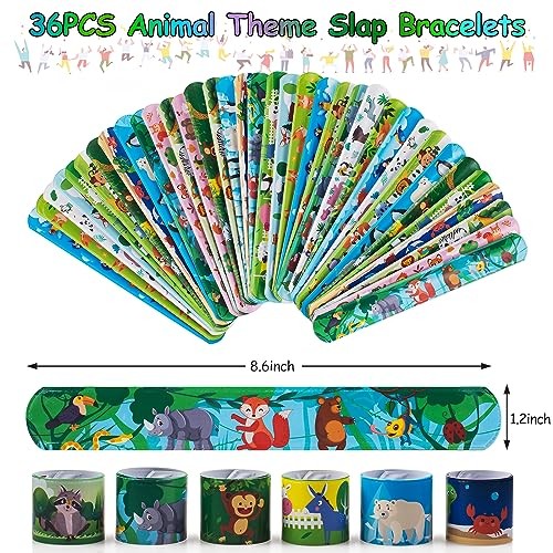 48 PCS Party Favors Slap Bracelets for Kids Animal Rubber Bracelets Silicone