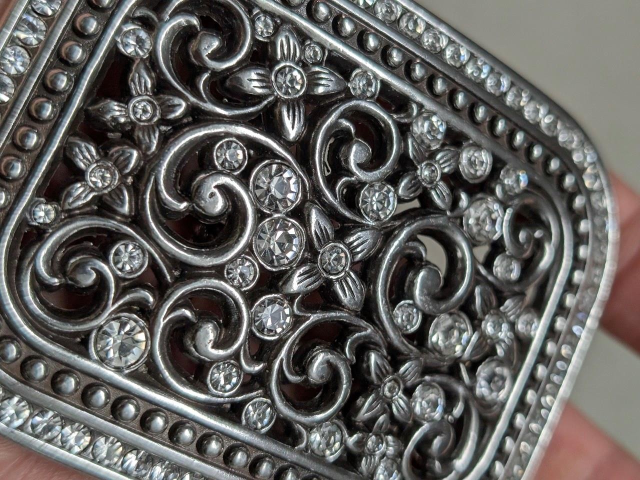как выглядит vintage Y2K belt buckle STUDDED rhinestone FLORAL cowboy WESTERN metallic фото