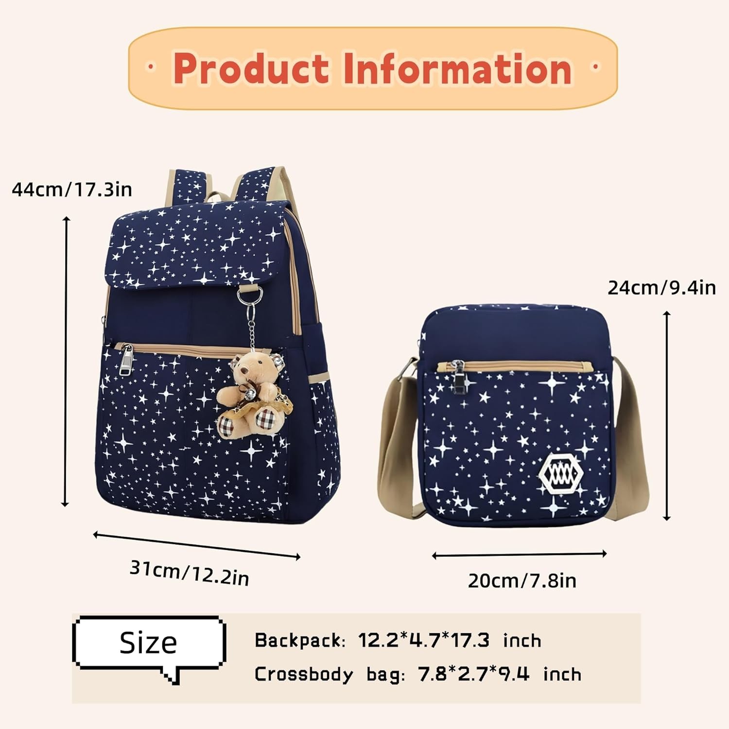 Star Print Girls Black Backpacks Set for School, School Bags A-black