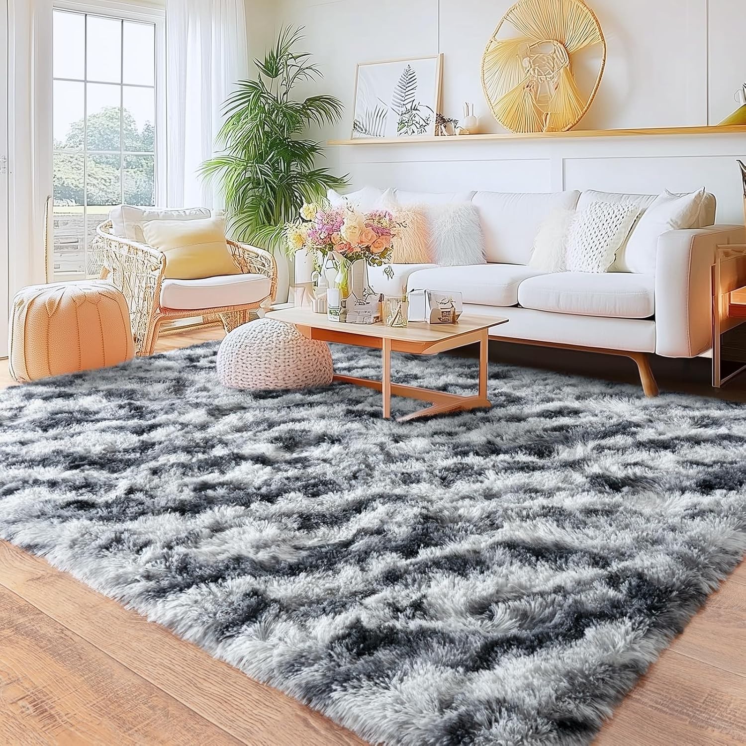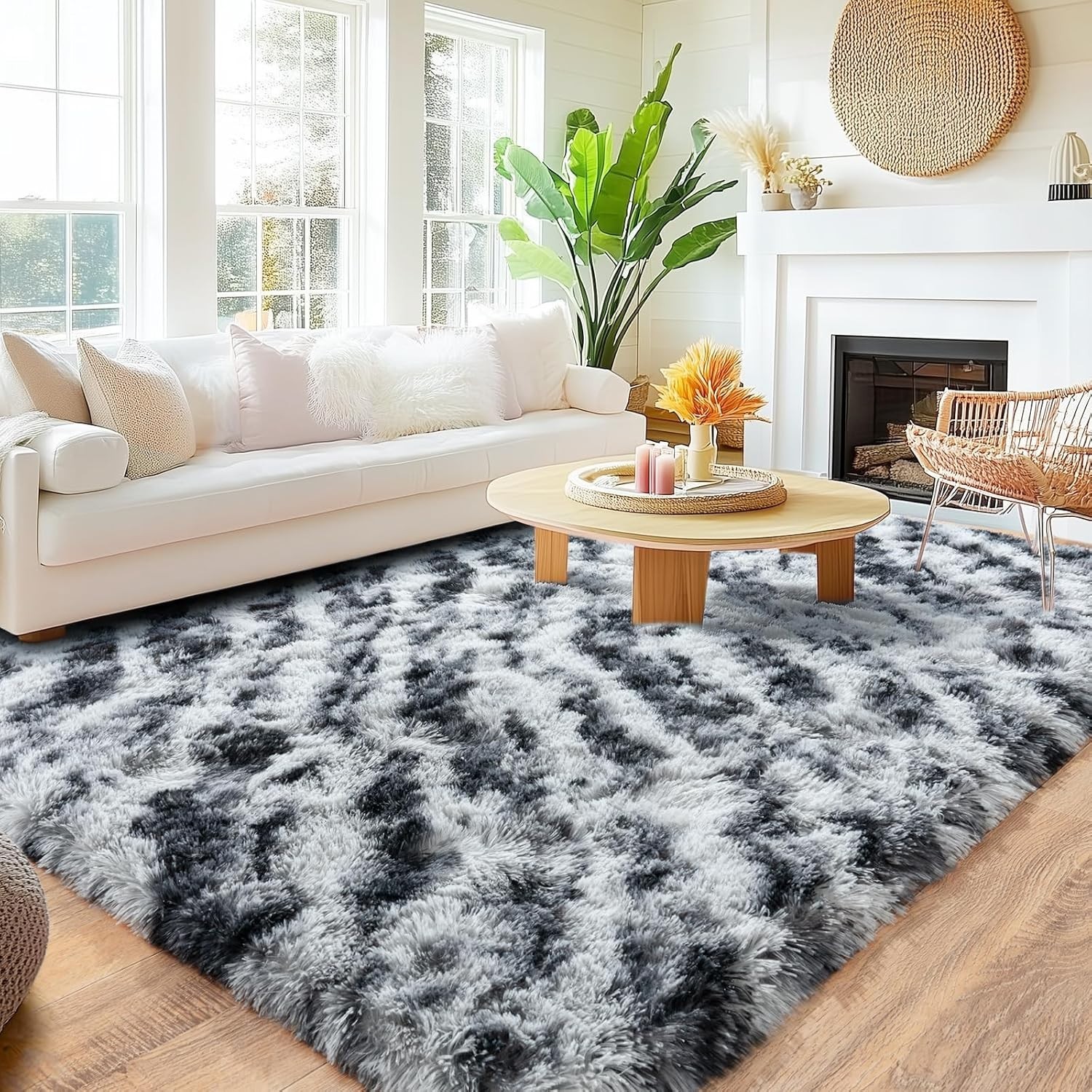 Fluffy Area Rug 8x10 Tie-Dyed Large Plush Soft Mat for Living Room Bedroom Floor