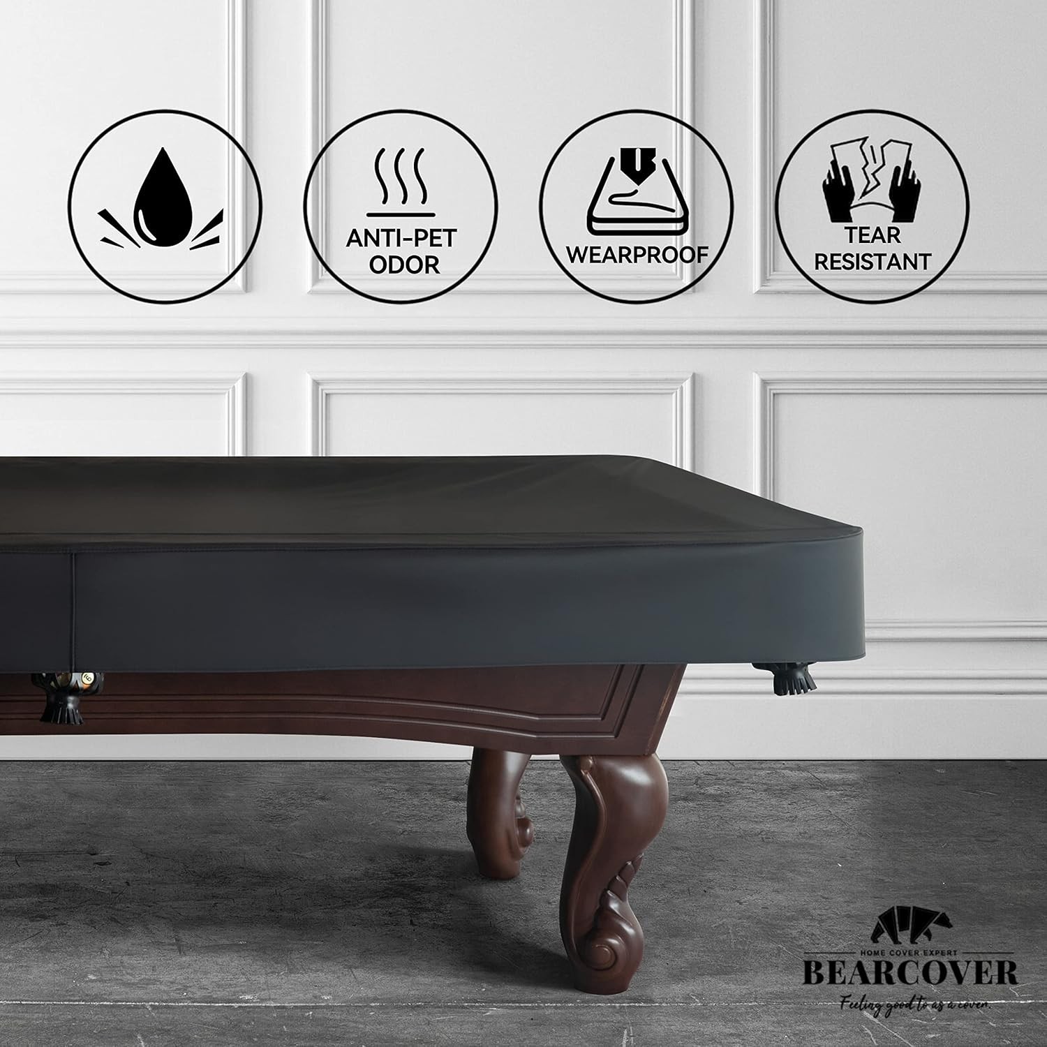 как выглядит Durable 8FT Heavy Duty Billiard Cover - Waterproof Leatherette Protection, Black фото
