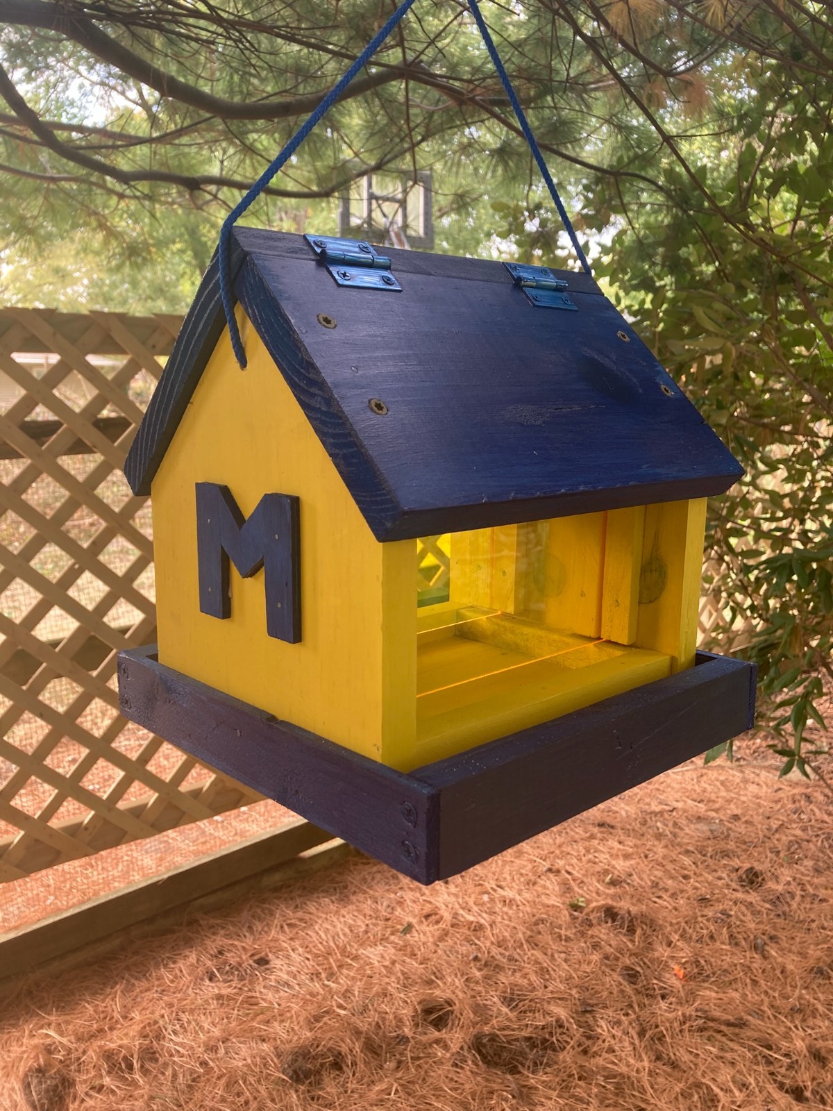 Wooden Bird Feeder-outdoor hanging or mountable - Michigan Maize Blue