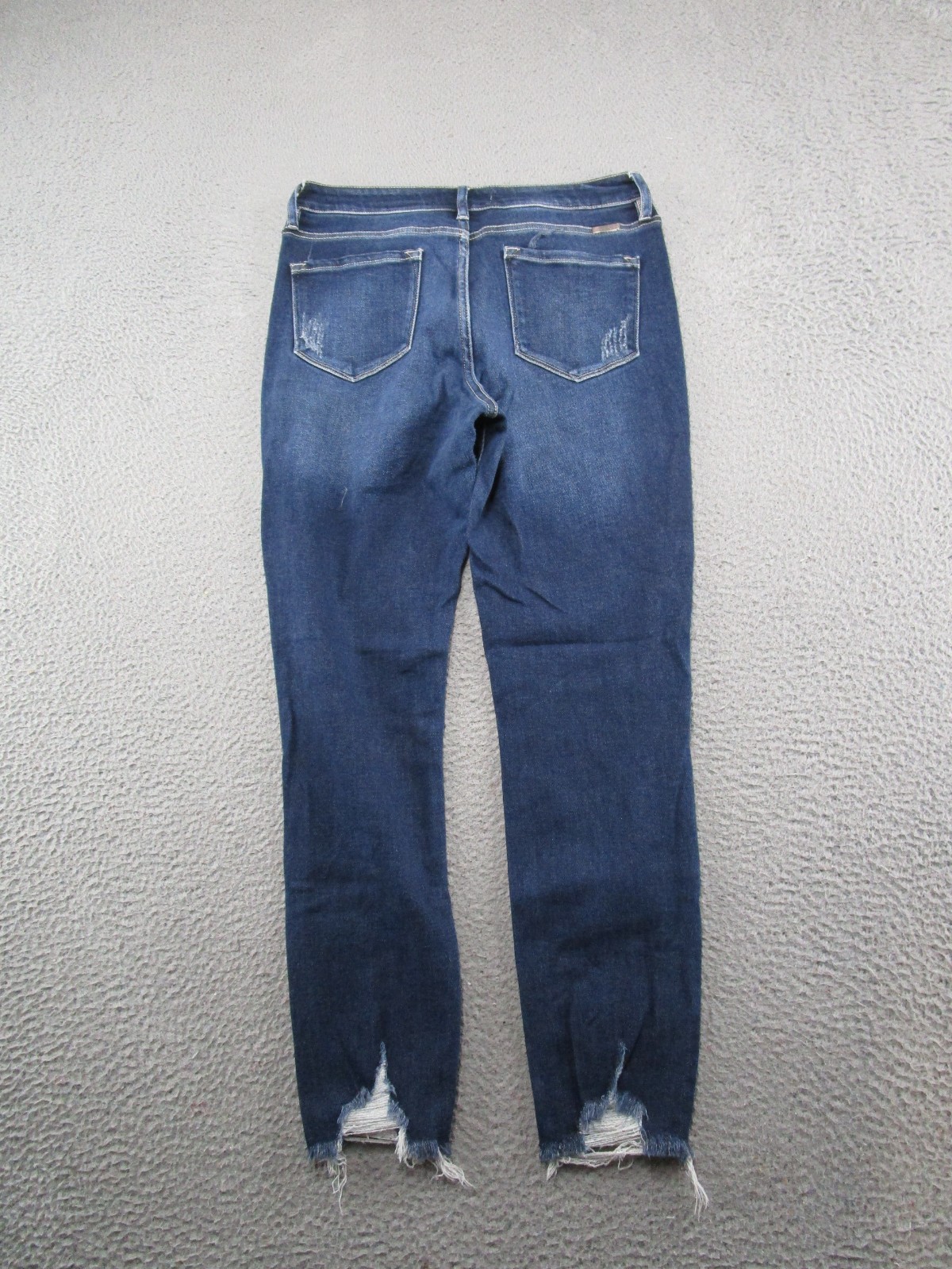 Kancan Women's High Rise Distressed Dark Denim Ankle Stretch Jeans Size 13/30