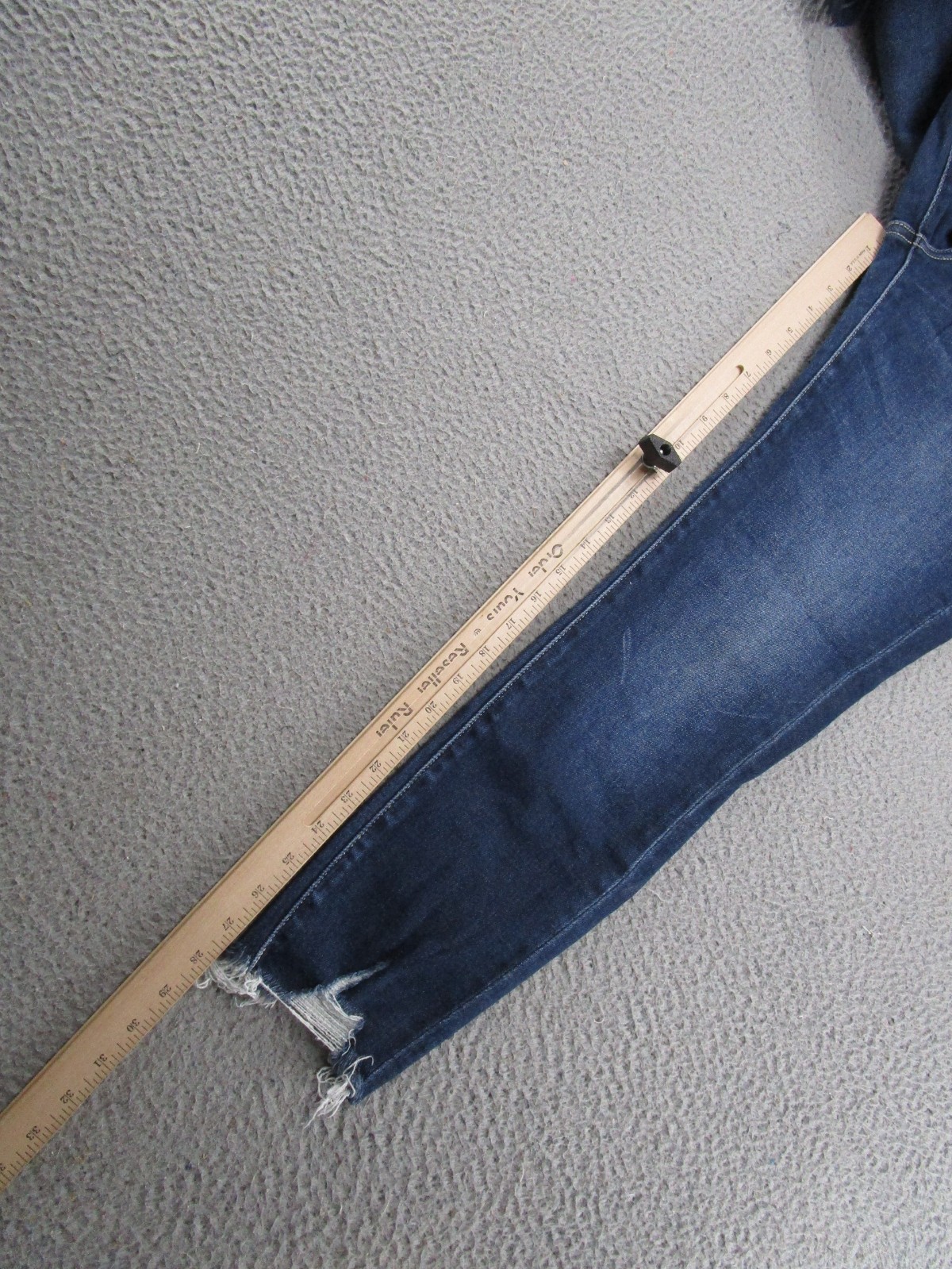 как выглядит Kancan Womens High Rise Distressed Dark Denim Ankle Stretch Jeans Size 13/30 фото